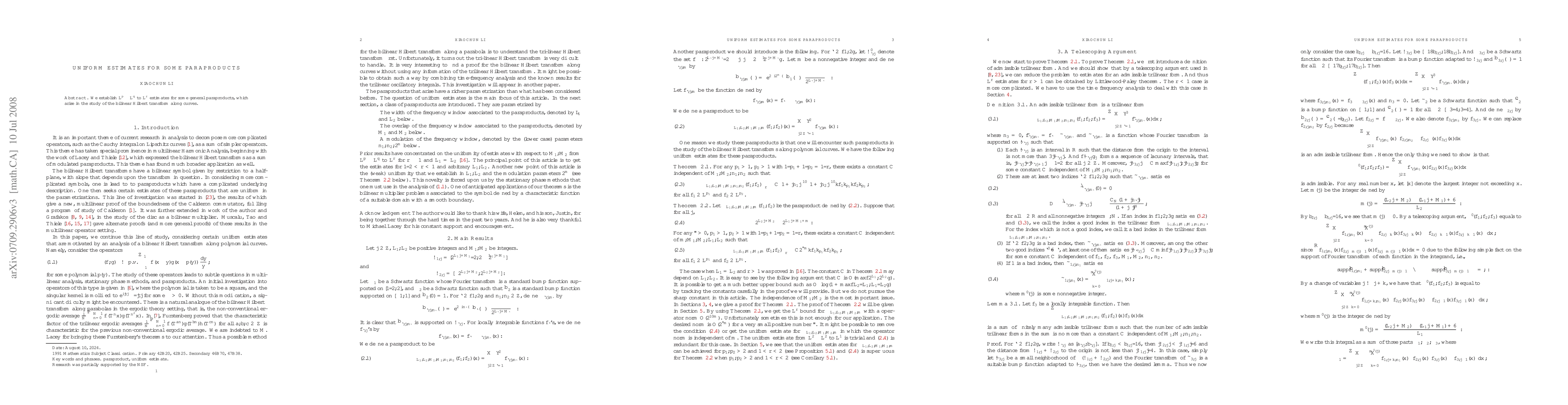 Summary: This paper establishes uniform $L^p\times L^q$ to $L^r$ estimates for certain paraproducts, which are significant in the study of the bilinear Hilbert transform along curves. These estimates provide crucial insights into the behavior of these paraproducts.