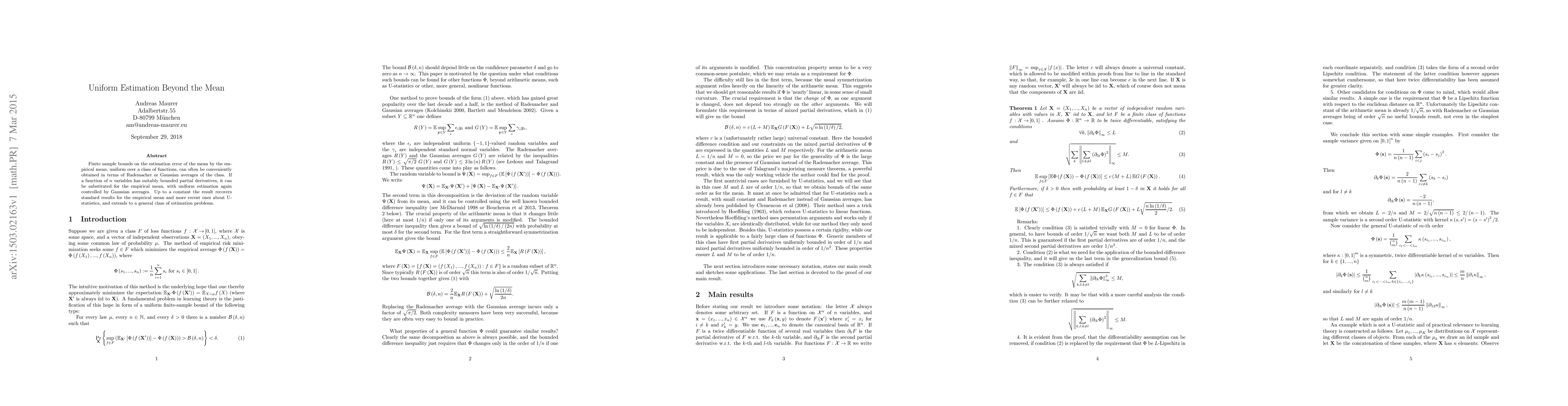 Finite sample bounds on the estimation error of the mean by the empirical mean, uniform over a class of functions, can often be conveniently obtained in terms of Rademacher or Gaussian averages of the class. If a function of n variables has suitably bounded partial derivatives, it can be substituted for the empirical mean, with uniform estimation again controlled by Gaussian averages. Up to a constant the result recovers standard results for the empirical mean and more recent ones about U-statistics, and extends to a general class of estimation problems.