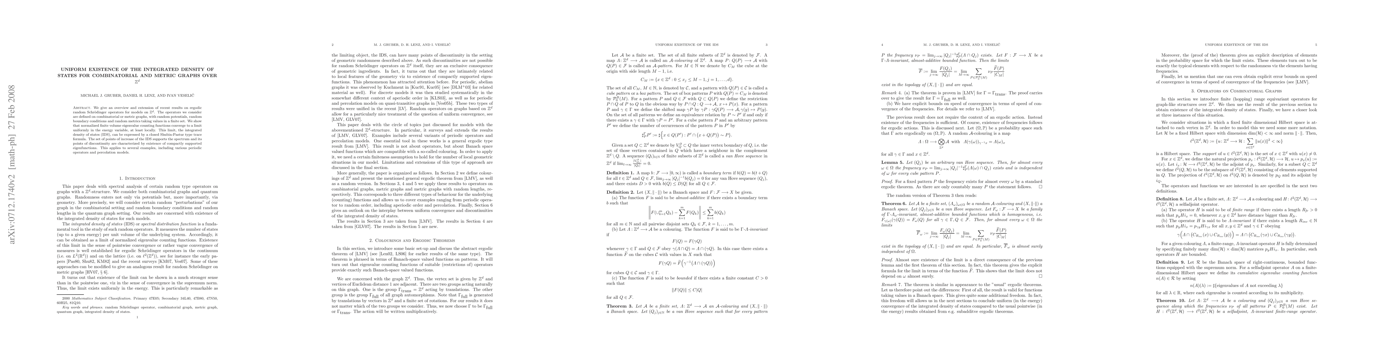 We give an overview and extension of recent results on ergodic random Schr\"odinger operators for models on $\mathbb{Z}^d$. The operators we consider are defined on combinatorial or metric graphs, with random potentials, random boundary conditions and random metrics taking values in a finite set. We show that normalized finite volume eigenvalue counting functions converge to a limit uniformly in the energy variable, at least locally. This limit, the integrated density of states (IDS), can be expressed by a closed Shubin-Pastur type trace formula. The set of points of increase of the IDS supports the spectrum and its points of discontinuity are characterized by existence of compactly supported eigenfunctions. This applies to several examples, including various periodic operators and percolation models.