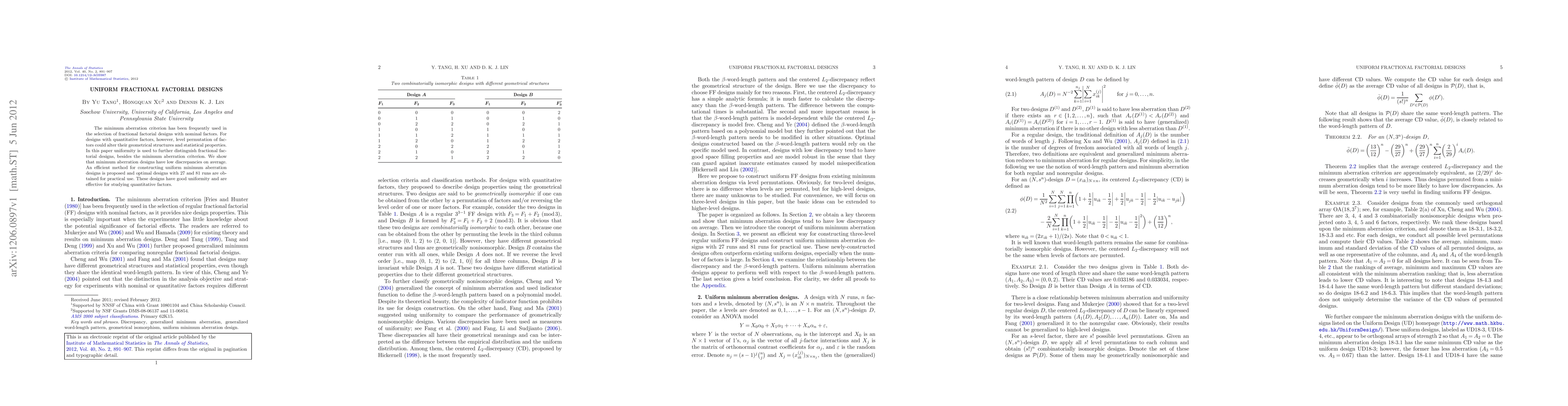 The paper introduces a novel approach for constructing uniform fractional factorial designs by permuting levels of minimum aberration designs, ensuring good uniformity and performance for studying quantitative factors.