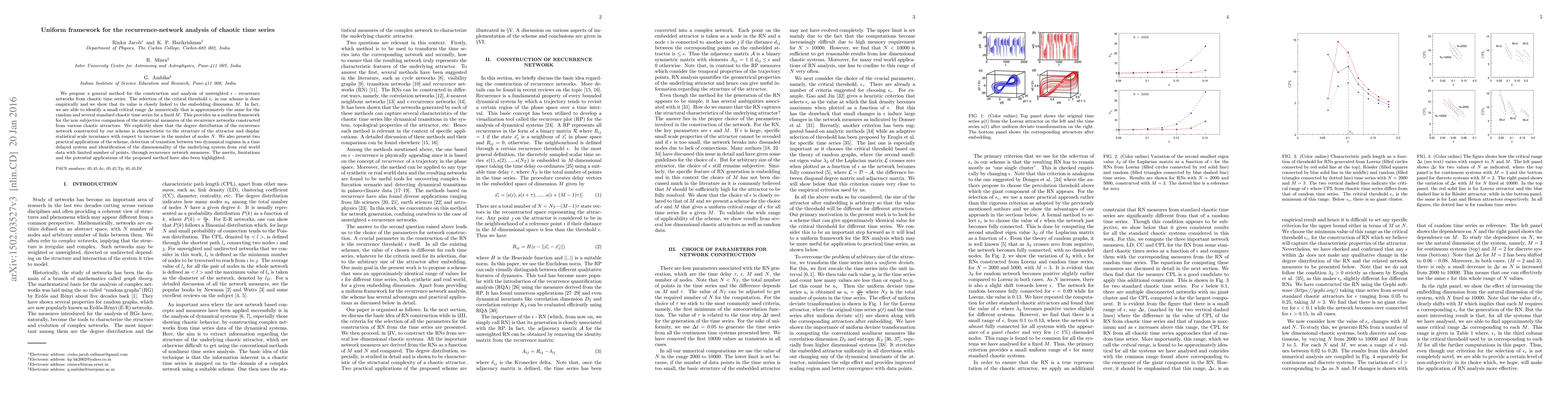 This paper introduces a uniform method for constructing and analyzing unweighted $\epsilon$-recurrence networks from chaotic time series, emphasizing the critical threshold $\epsilon_c$ linked to the embedding dimension $M$. The proposed scheme enables objective comparisons of recurrence networks and demonstrates statistical scale invariance in degree distribution, with practical applications in detecting dynamical regime transitions and identifying system dimensionality.