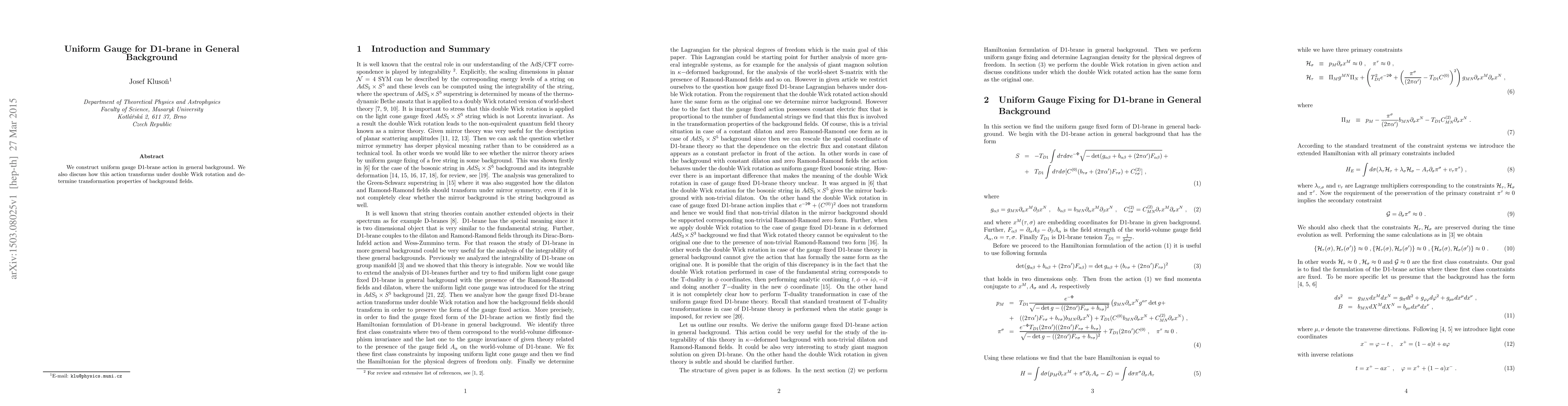 We construct uniform gauge D1-brane action in general background. We also discuss how this action transforms under double Wick rotation and determine transformation properties of background fields.