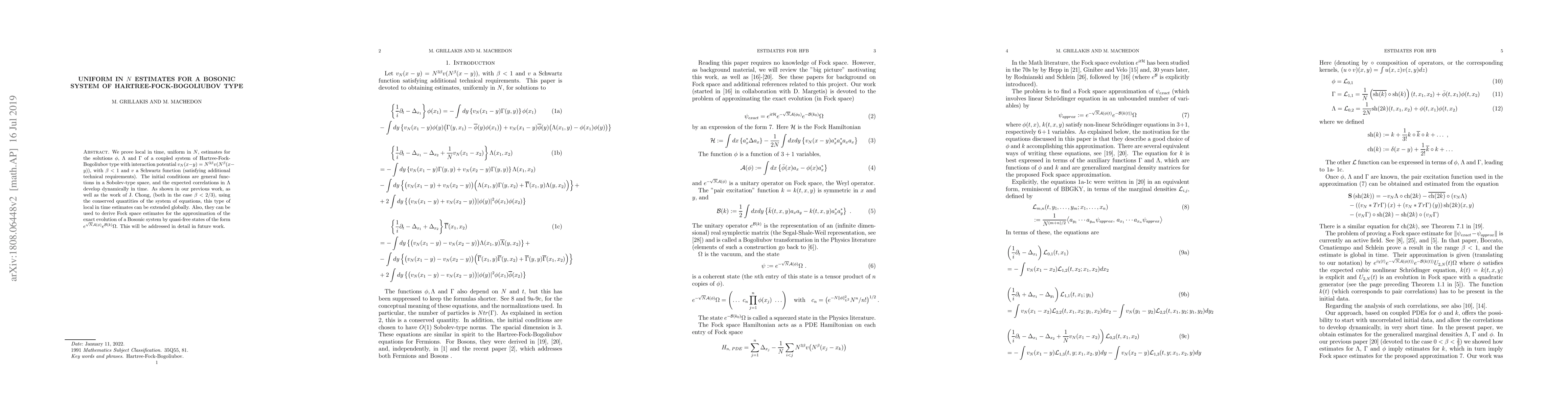 This paper proves local in time, uniform in N estimates for solutions of a coupled system of Hartree-Fock-Bogoliubov type with interaction potential, showing expected correlations develop dynamically over time.