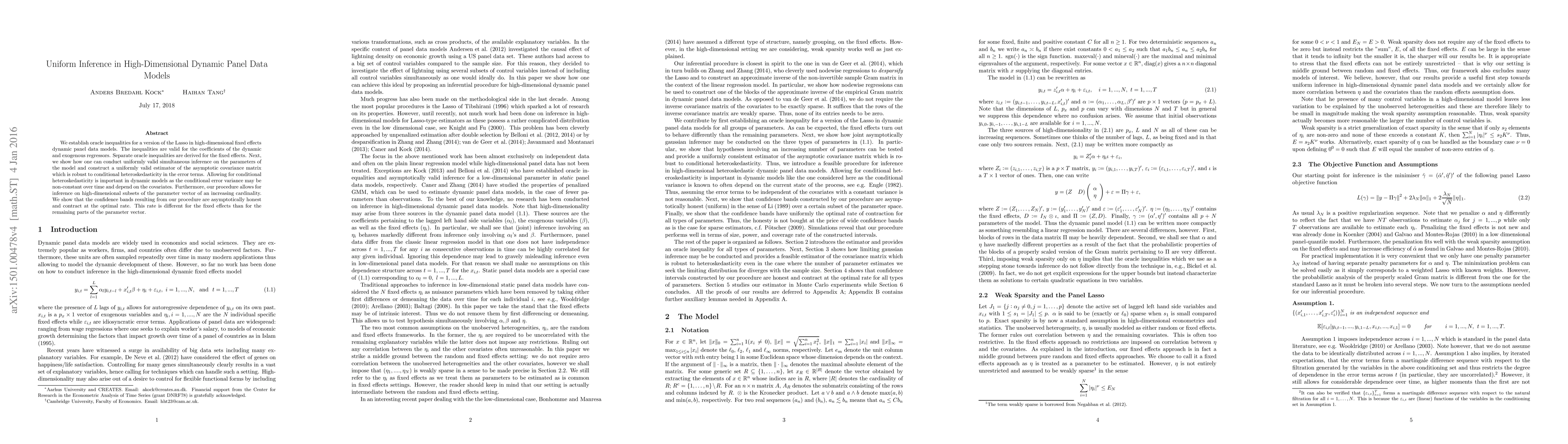 This paper develops uniform inference methods for high-dimensional dynamic panel data models using Lasso, providing oracle inequalities for both dynamic and exogenous regressors, as well as fixed effects. It constructs a robust estimator for the asymptotic covariance matrix, allowing for conditional heteroskedasticity, and demonstrates asymptotically honest confidence bands that contract at optimal rates.