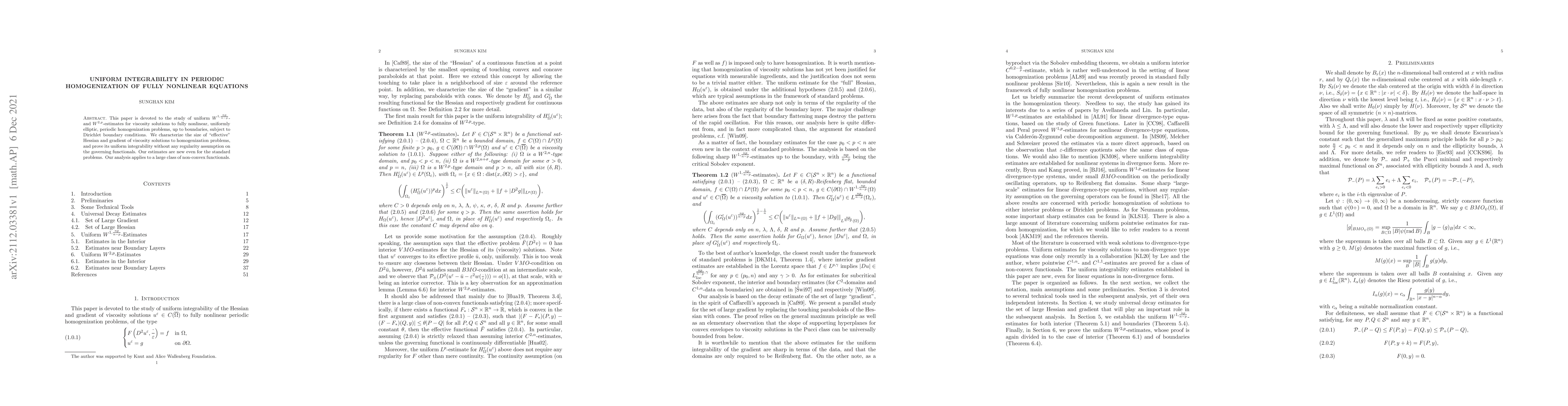 This paper is devoted to the study of uniform $W^{1,\frac{np}{n-p}}$- and $W^{2,p}$-estimates for viscosity solutions to fully nonlinear, uniformly elliptic, periodic homogenization problems, up to boundaries, subject to Dirichlet boundary conditions. We characterize the size of "effective" Hessian and gradient of viscosity solutions to homogenization problems, and prove its uniform integrability without any regularity assumption on the governing functionals. Our estimates are new even for the standard problems. Our analysis applies to a large class of non-convex functionals.