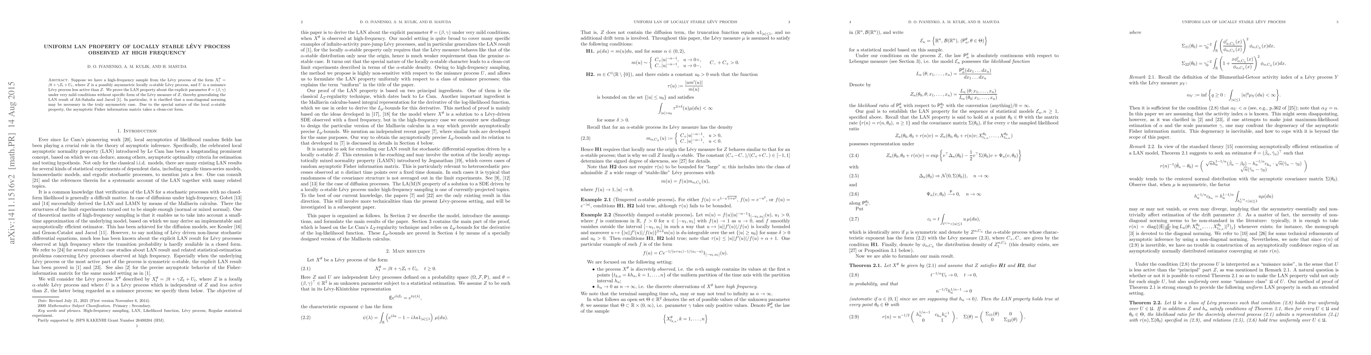 Suppose we have a high-frequency sample from the L\'{e}vy process of the form $X_t^\theta=\beta t+\gamma Z_t+U_t$, where $Z$ is a possibly asymmetric locally $\alpha$-stable L\'{e}vy process, and $U$ is a nuisance L\'{e}vy process less active than $Z$. We prove the LAN property about the explicit parameter $\theta=(\beta,\gamma)$ under very mild conditions without specific form of the L\'{e}vy measure of $Z$, thereby generalizing the LAN result of A\"{\i}t-Sahalia and Jacod (2007). In particular, it is clarified that a non-diagonal norming may be necessary in the truly asymmetric case. Due to the special nature of the local $\alpha$-stable property, the asymptotic Fisher information matrix takes a clean-cut form.