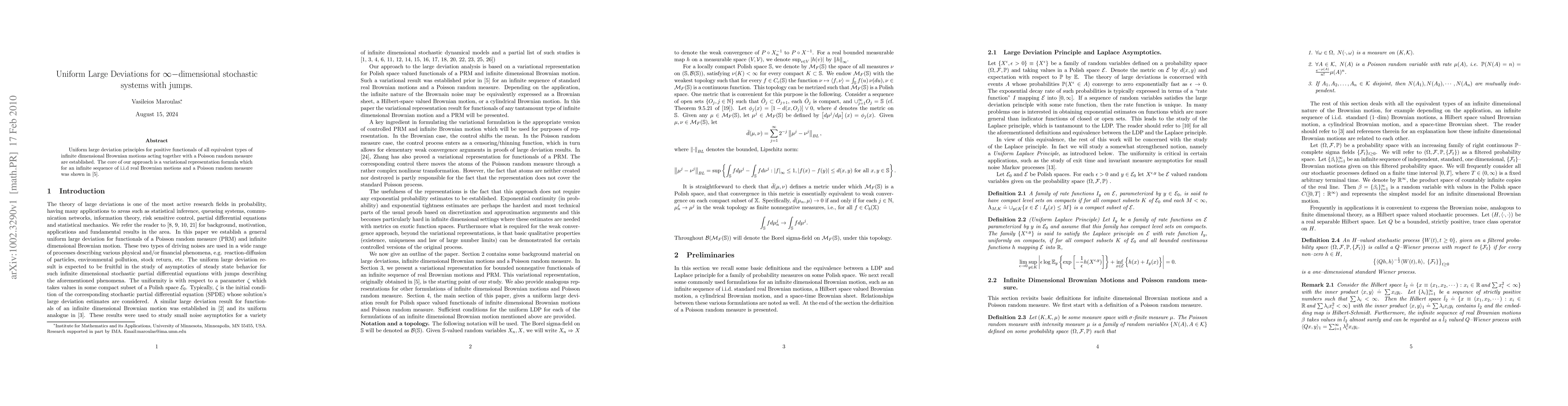 Researchers establish uniform large deviation principles for infinite dimensional stochastic systems with jumps, building on a variational representation formula for Brownian motions and Poisson random measures.