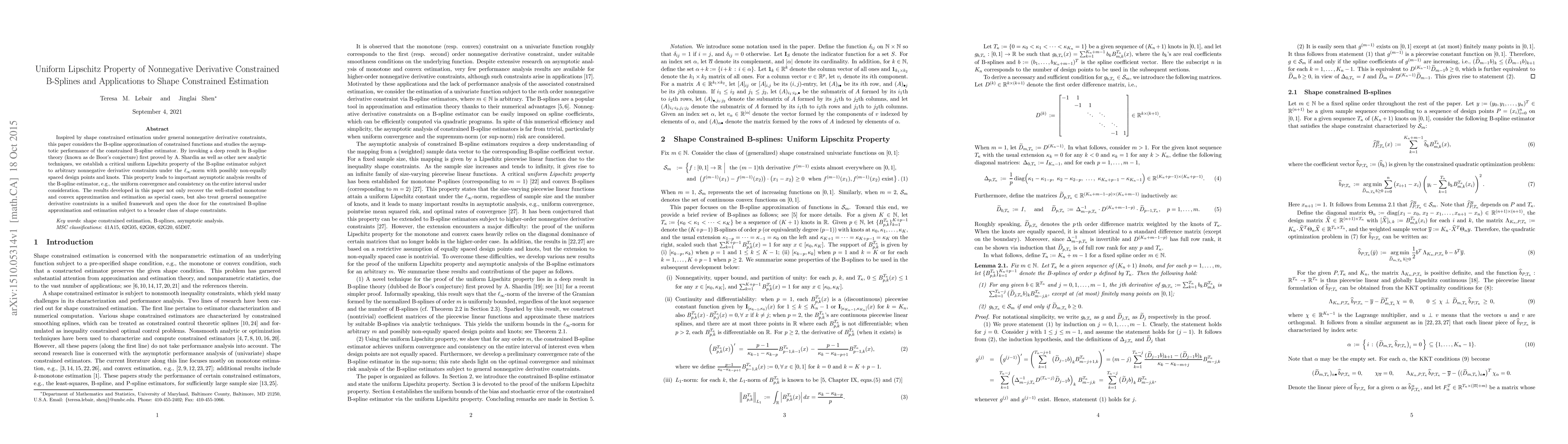 This paper establishes a uniform Lipschitz property for B-spline estimators under nonnegative derivative constraints, leveraging de Boor's conjecture and new analytic techniques. The findings enable uniform convergence and consistency in shape-constrained estimation, extending beyond traditional monotone and convex cases.