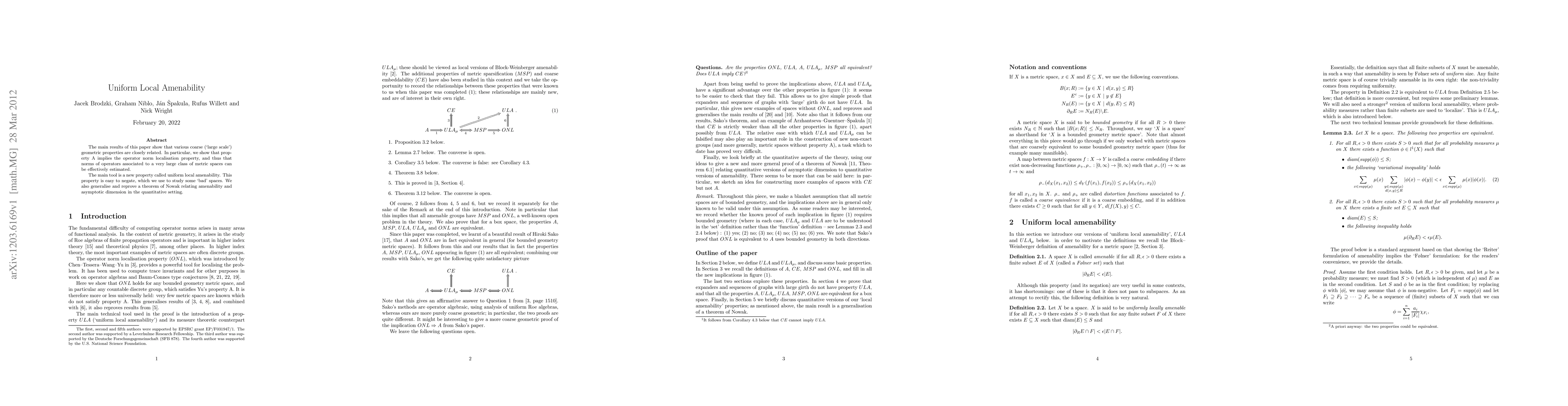 The main results of this paper show that various coarse (`large scale') geometric properties are closely related. In particular, we show that property A implies the operator norm localisation property, and thus that norms of operators associated to a very large class of metric spaces can be effectively estimated. The main tool is a new property called uniform local amenability. This property is easy to negate, which we use to study some `bad' spaces. We also generalise and reprove a theorem of Nowak relating amenability and asymptotic dimension in the quantitative setting.