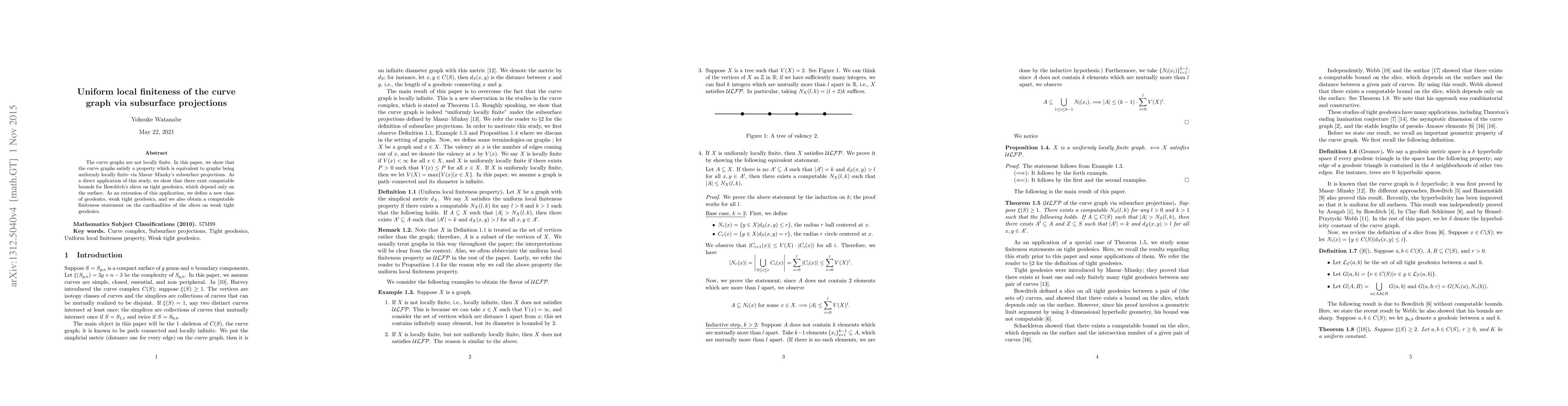 The curve graphs are not locally finite. In this paper, we show that the curve graphs satisfy a property which is equivalent to graphs being uniformly locally finite via Masur--Minsky's subsurface projections. As a direct application of this study, we show that there exist computable bounds for Bowditch's slices on tight geodesics, which depend only on the surface. As an extension of this application, we define a new class of geodesics, weak tight geodesics, and we also obtain a computable finiteness statement on the cardinalities of the slices on weak tight geodesics.