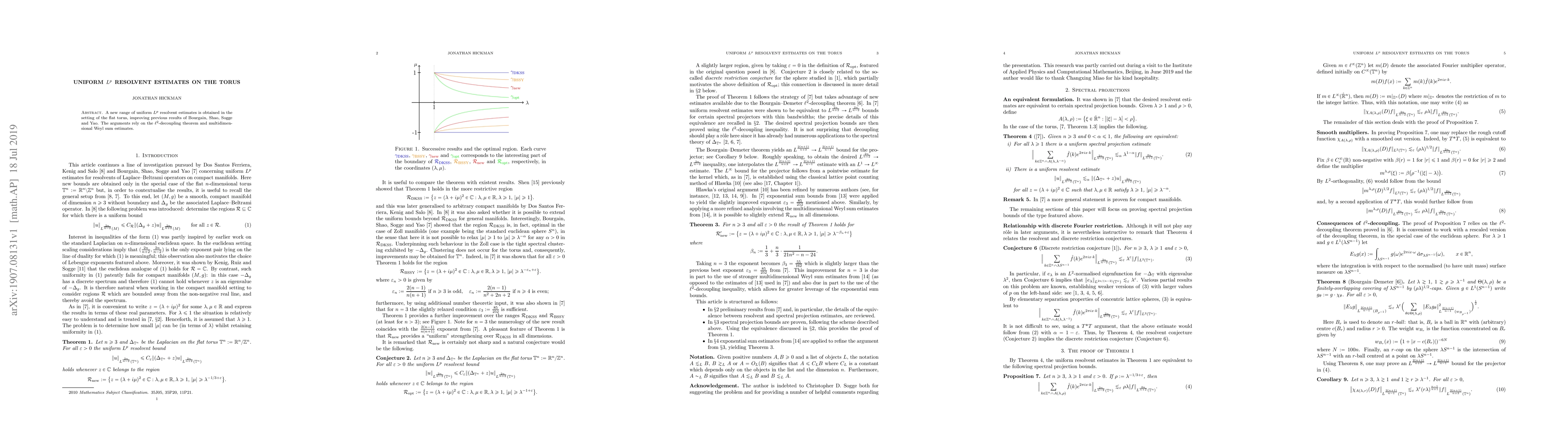 A new range of uniform $L^p$ resolvent estimates is obtained in the setting of the flat torus, improving previous results of Bourgain, Shao, Sogge and Yao. The arguments rely on the $\ell^2$-decoupling theorem and multidimensional Weyl sum estimates.