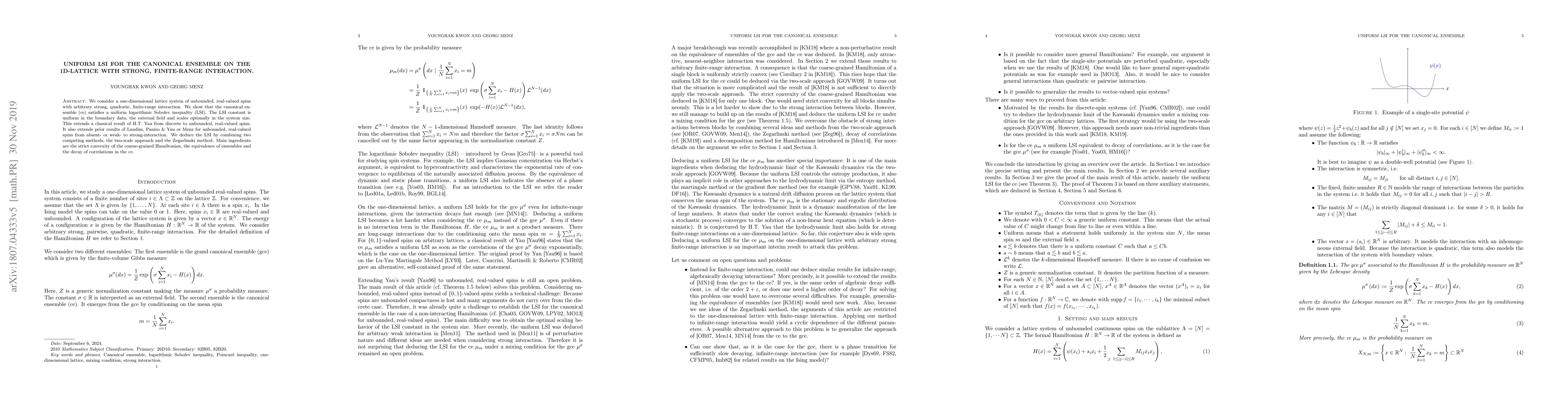 The research paper proves that a one-dimensional lattice system with strong, finite-range interactions satisfies a uniform logarithmic Sobolev inequality, extending previous results to unbounded spins.
