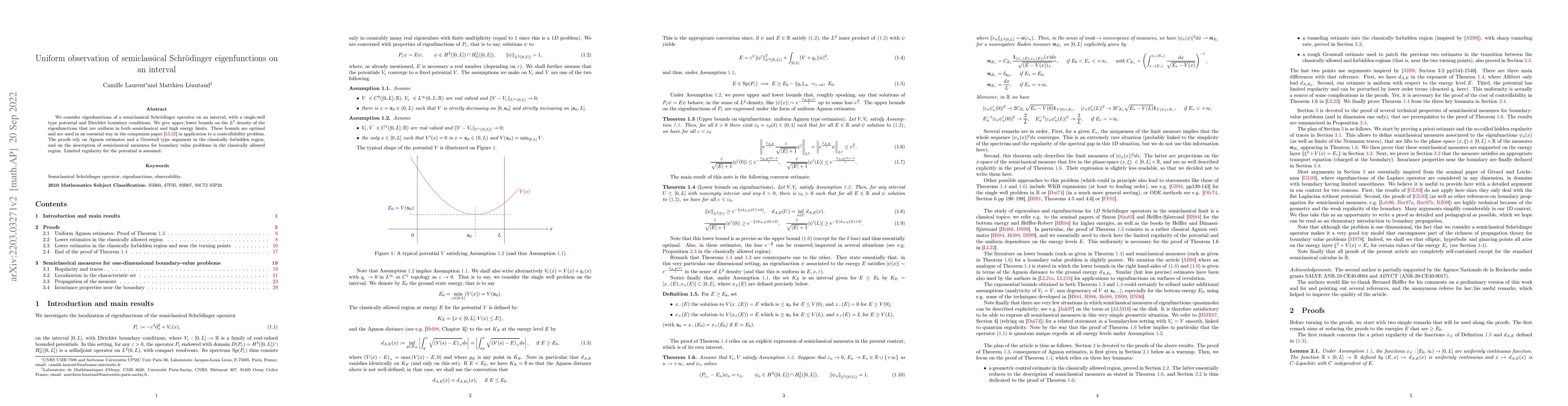 This paper provides uniform upper and lower bounds on the L^2 density of semiclassical Schrödinger eigenfunctions on an interval with a single-well potential and Dirichlet conditions. The bounds are optimal and rely on Agmon estimates and semiclassical measure descriptions, with applications to controllability in a companion study.