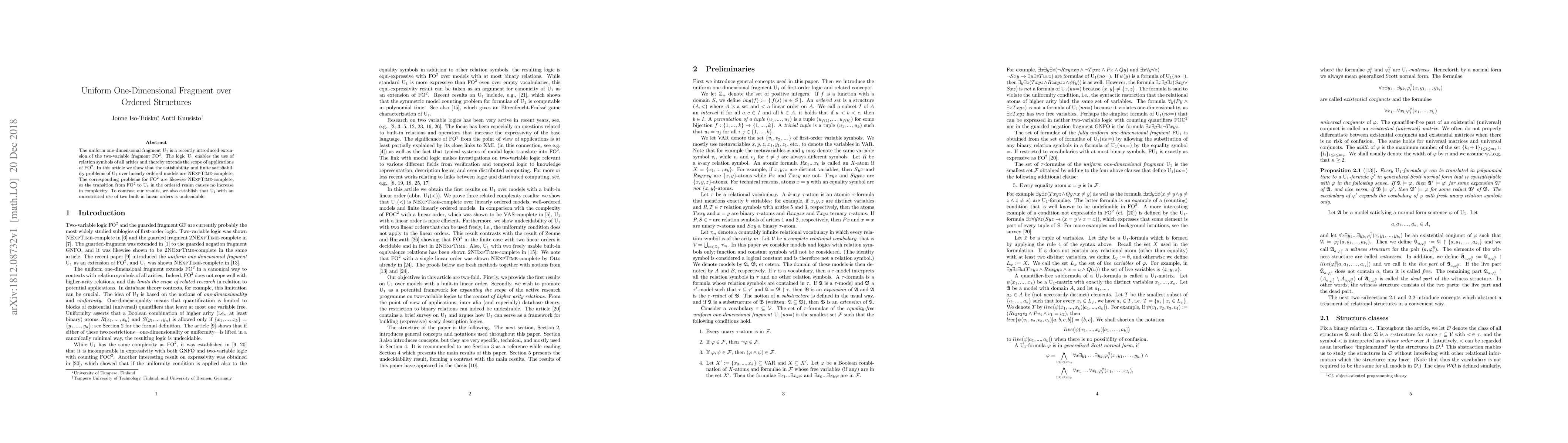 This paper demonstrates that the satisfiability and finite satisfiability problems of the uniform one-dimensional fragment U1 over linearly ordered structures remain NExpTime-complete, paralleling the complexity of FO2. However, U1 with unrestricted use of two built-in linear orders is shown to be undecidable.