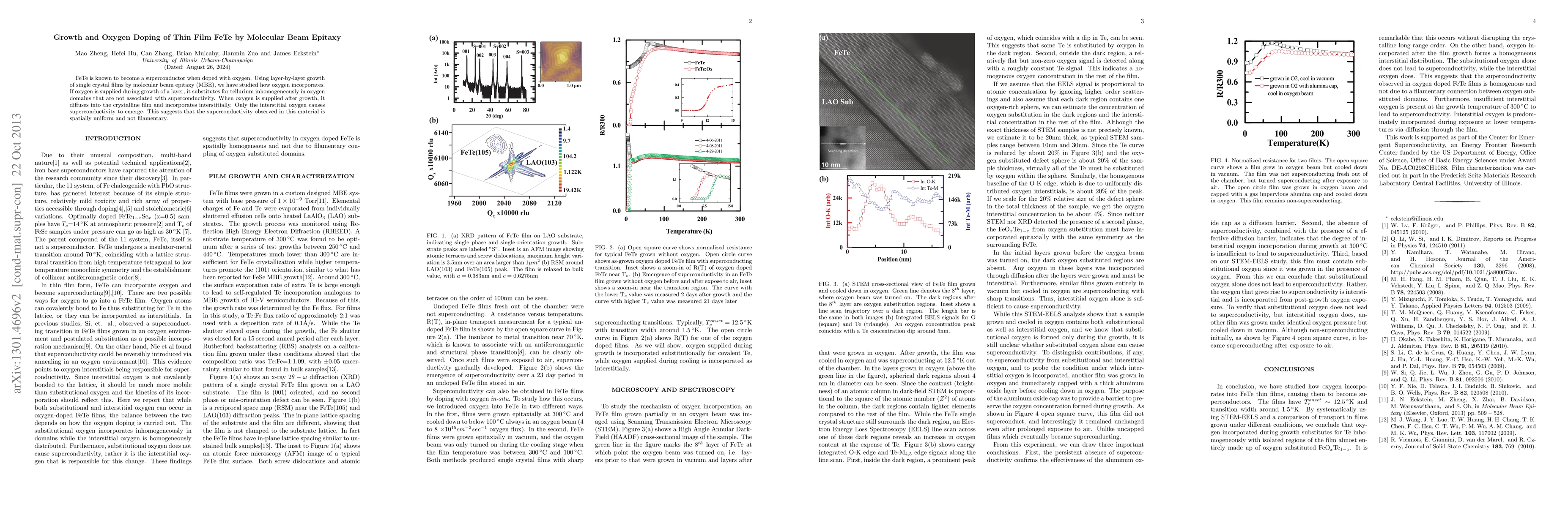 This study reveals that uniform oxygen doping, achieved by post-growth diffusion, induces superconductivity in FeTe films, contrasting with the inhomogeneous incorporation during growth that does not lead to superconductivity. This suggests uniform spatial distribution of interstitial oxygen is crucial for superconductivity.