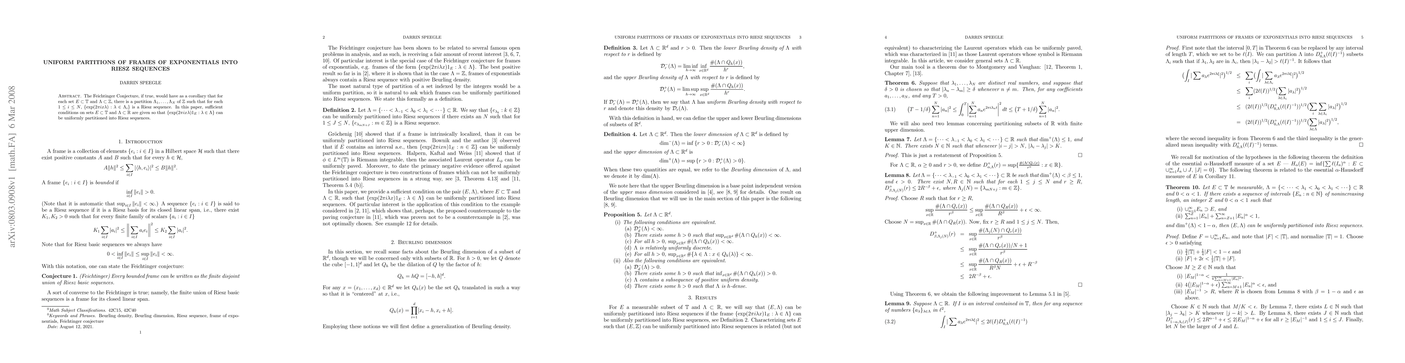 This paper provides sufficient conditions for partitioning sets of exponentials into Riesz sequences, a problem related to the Feichtinger Conjecture, with implications for harmonic analysis.
