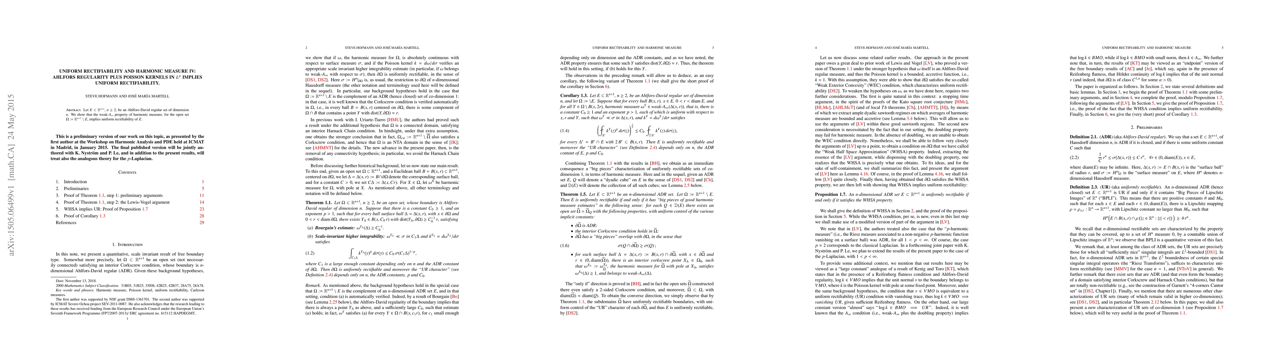 Summary: This paper demonstrates that Ahlfors regularity of a set $E$ combined with the weak-$A_\infty$ property of harmonic measure in its complement $\Omega$ leads to the uniform rectifiability of $E$. The result connects geometric properties with harmonic analysis in higher dimensions.