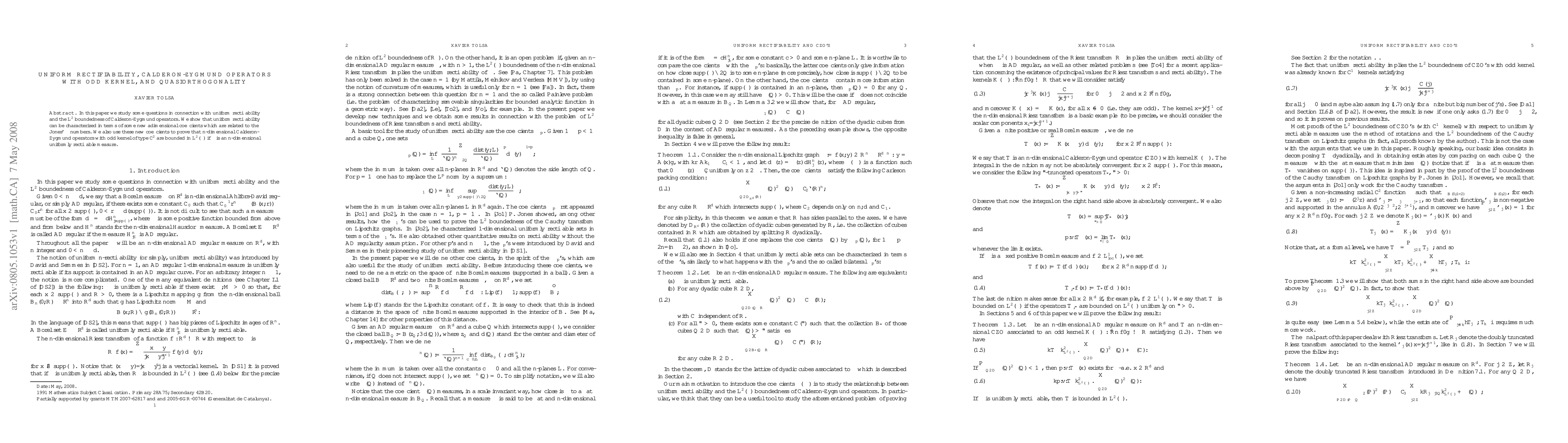 In this paper we study some questions in connection with uniform rectifiability and the $L^2$ boundedness of Calderon-Zygmund operators. We show that uniform rectifiability can be characterized in terms of some new adimensional coefficients which are related to the Jones' $\beta$ numbers. We also use these new coefficients to prove that n-dimensional Calderon-Zygmund operators with odd kernel of type $C^2$ are bounded in $L^2(\mu)$ if $\mu$ is an n-dimensional uniformly rectifiable measure.
