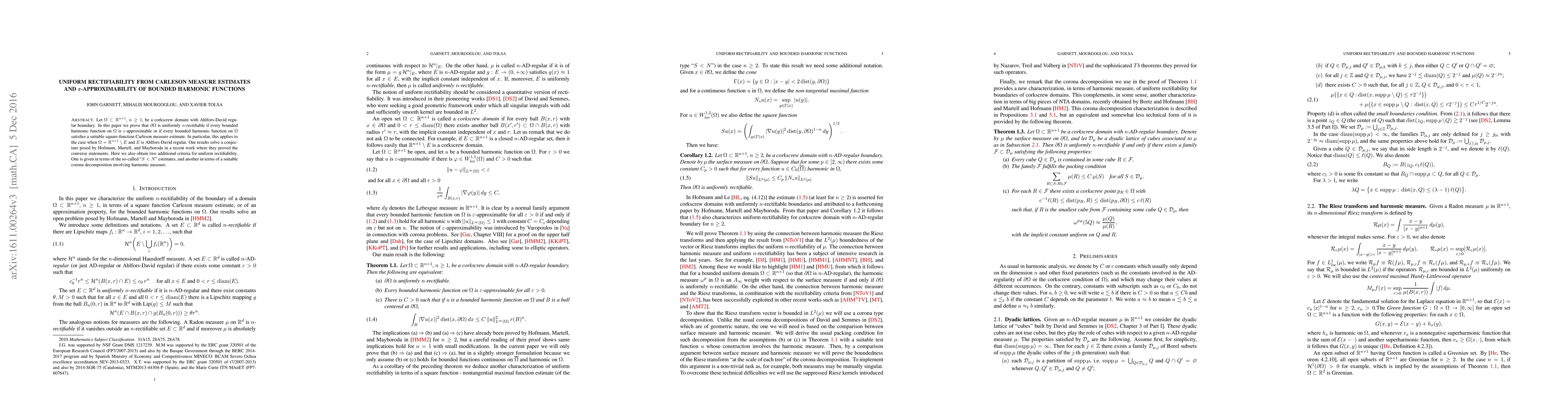 uniformly $n$-rectifiable if every bounded harmonic function on $\Omega$ is