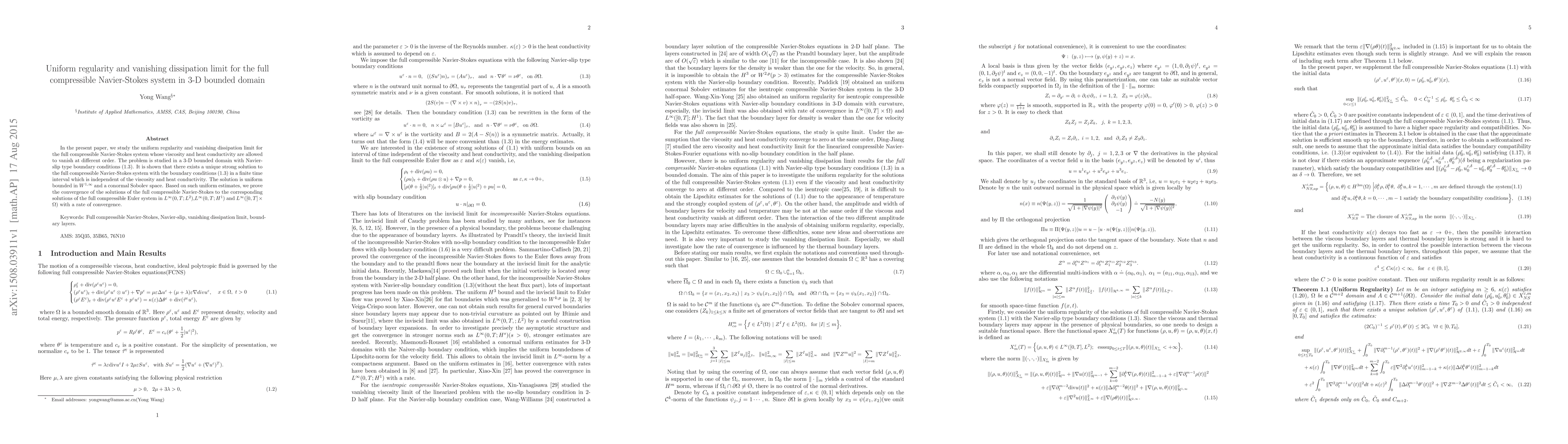 This paper investigates uniform regularity and the vanishing dissipation limit for the full compressible Navier-Stokes system in a 3-D bounded domain. It demonstrates the existence of a unique strong solution independent of viscosity and heat conductivity, and proves its convergence to the compressible Euler system.