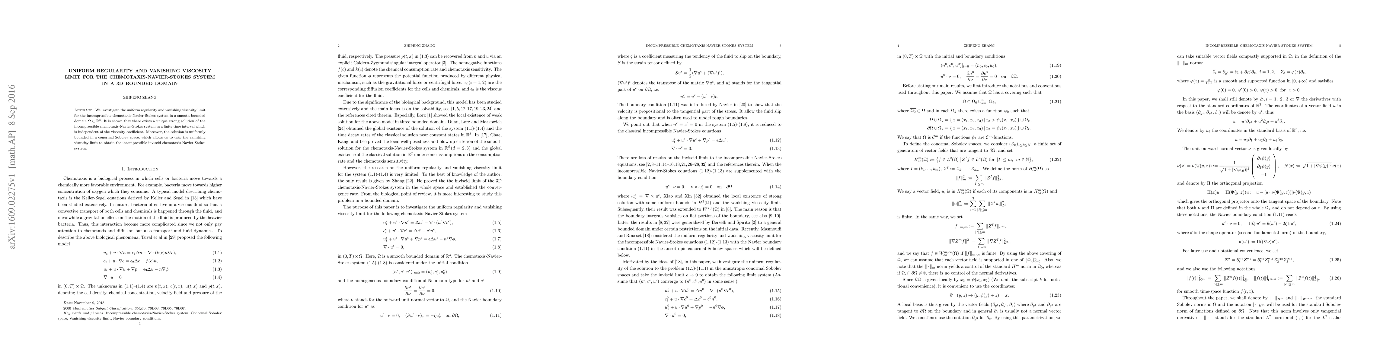 This paper studies uniform regularity and the vanishing viscosity limit for the chemotaxis-Navier-Stokes system in a 3D bounded domain. It demonstrates the existence of a unique strong solution that remains uniformly bounded, enabling the transition to an inviscid chemotaxis system as viscosity approaches zero.