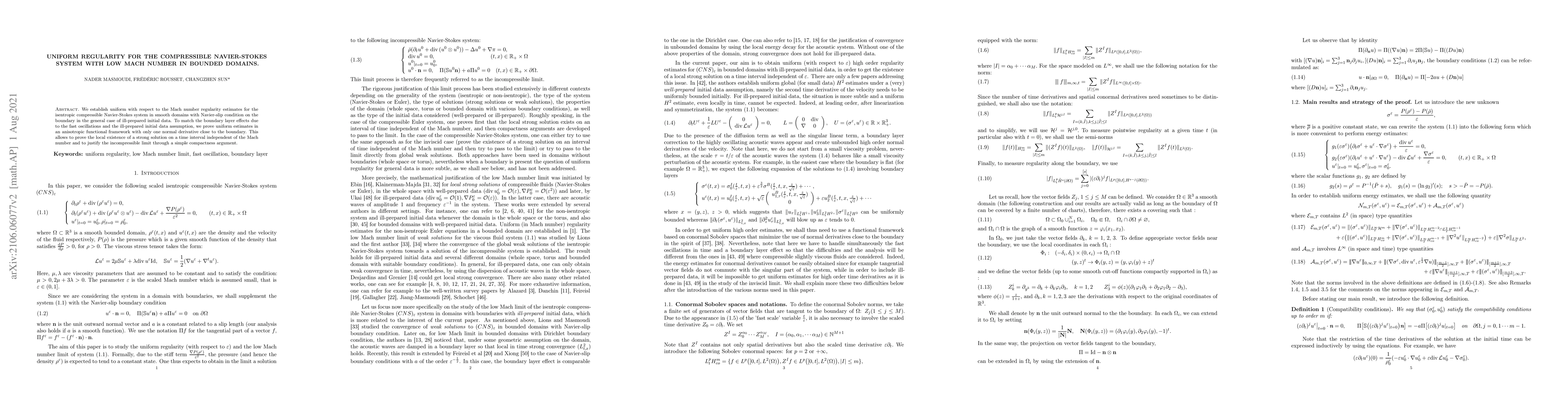 This paper establishes uniform regularity estimates for the compressible Navier-Stokes system under low Mach number conditions in bounded domains, proving local existence of a strong solution independent of Mach number and justifying the incompressible limit via compactness. The approach uses an anisotropic functional framework to handle boundary layer effects.