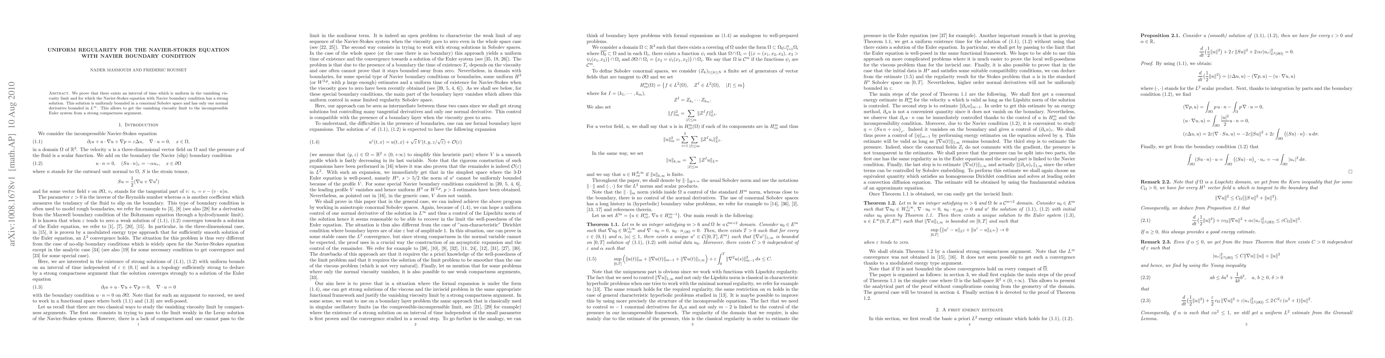 We prove that there exists an interval of time which is uniform in the vanishing viscosity limit and for which the Navier-Stokes equation with Navier boundary condition has a strong solution. This solution is uniformly bounded in a conormal Sobolev space and has only one normal derivative bounded in $L^\infty$. This allows to get the vanishing viscosity limit to the incompressible Euler system from a strong compactness argument.