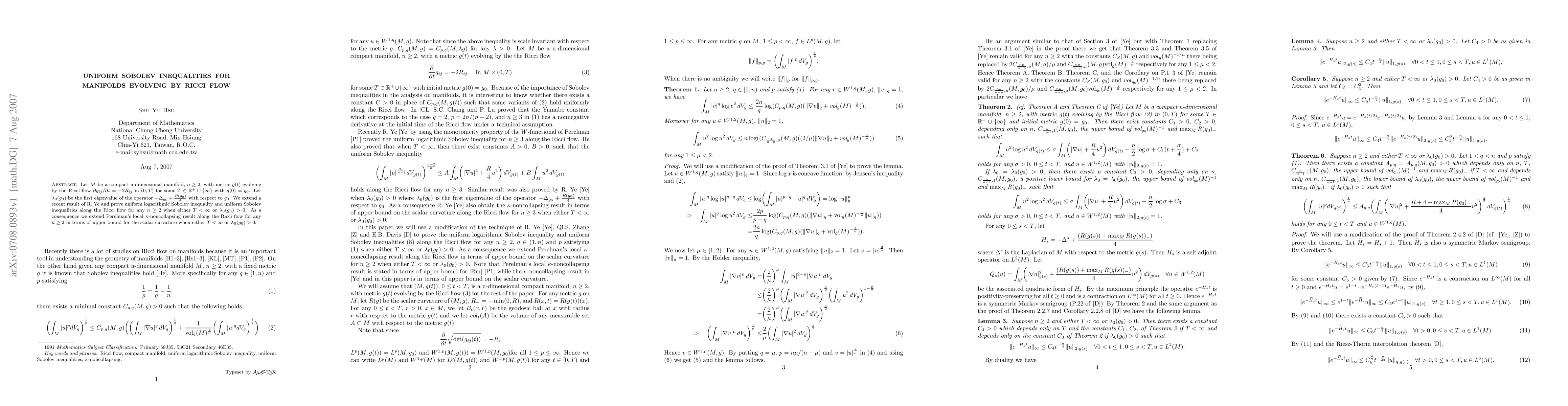 Let M be a compact n-dimensional manifold, $n\ge 2$, with metric g(t) evolving by the Ricci flow $\partial g_{ij}/\partial t=-2R_{ij}$ in (0,T) for some $T\in\Bbb{R}^+\cup\{\infty\}$ with $g(0)=g_0$. Let $\lambda_0(g_0)$ be the first eigenvalue of the operator $-\Delta_{g_0} +\frac{R(g_0)}{4}$ with respect to g_0. We extend a recent result of R. Ye and prove uniform logarithmic Sobolev inequality and uniform Sobolev inequalities along the Ricci flow for any $n\ge 2$ when either $T<\infty$ or $\lambda_0(g_0)>0$. As a consequence we extend Perelman's local $\kappa$-noncollapsing result along the Ricci flow for any $n\ge 2$ in terms of upper bound for the scalar curvature when either $T<\infty$ or $\lambda_0(g_0)>0$.