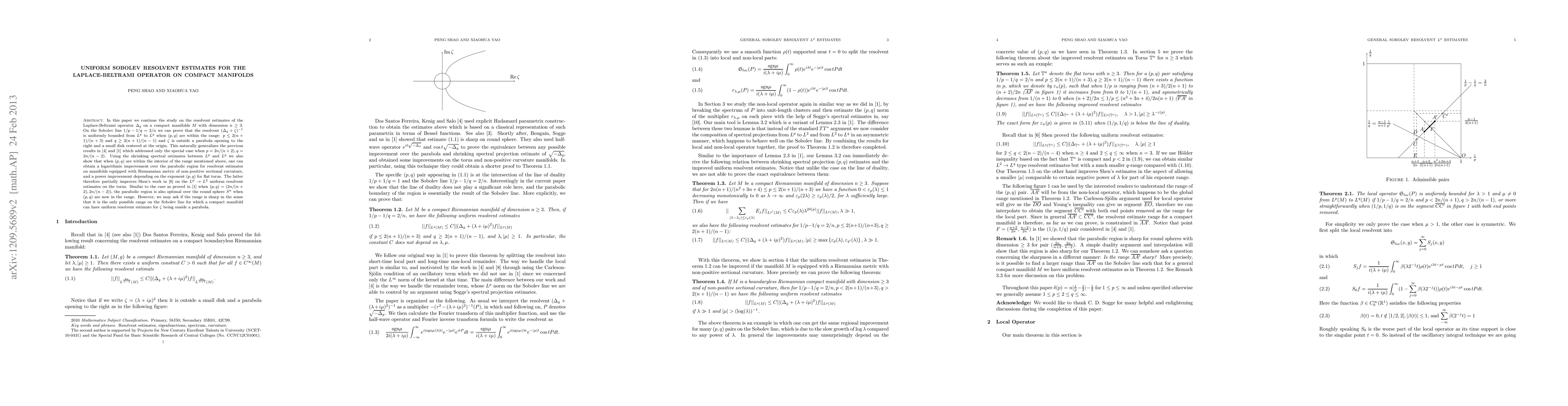 This paper establishes uniform Sobolev resolvent estimates for the Laplace-Beltrami operator on compact manifolds, proving that the resolvent is uniformly bounded under specified conditions. It generalizes previous results and shows improvements for manifolds with non-positive curvature and flat torus.