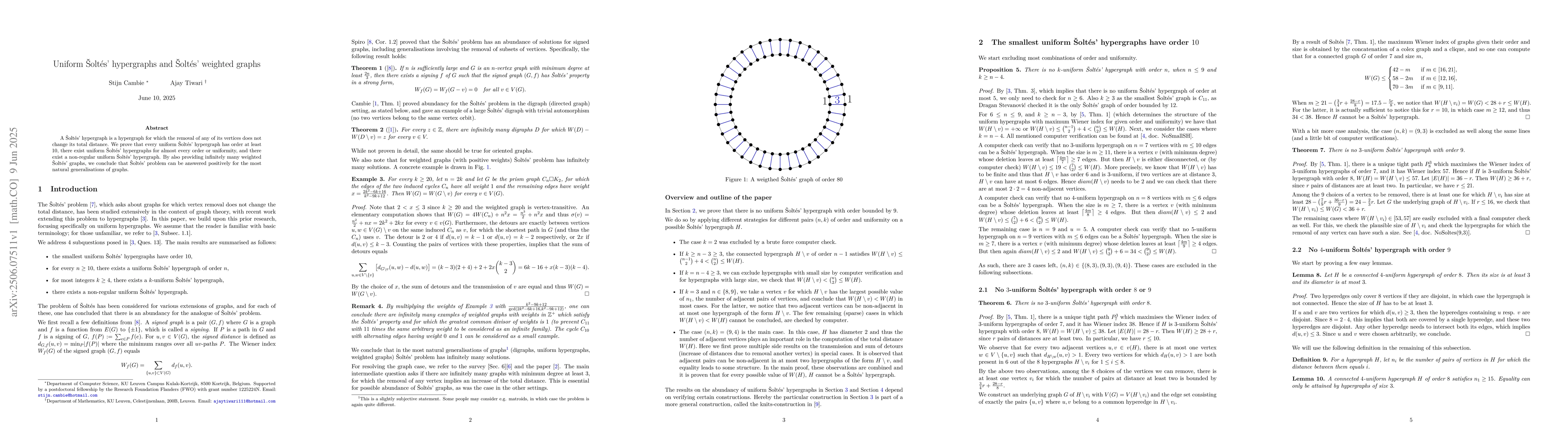 The paper establishes the existence conditions for uniform Šoltés' hypergraphs and extends Šoltés' problem to weighted graphs, providing both theoretical proofs and computational evidence.