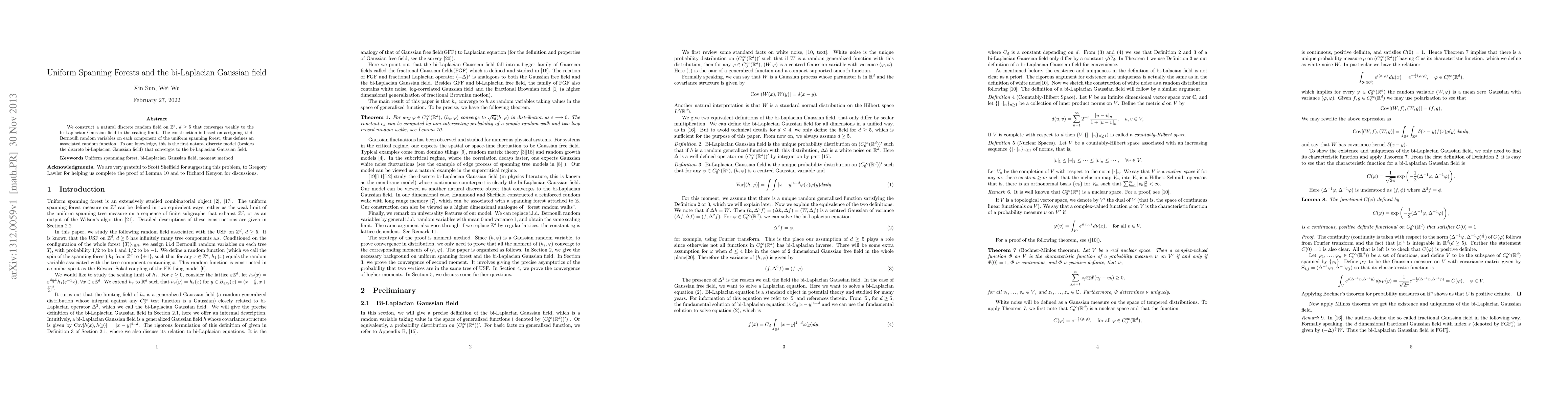 We construct a natural discrete random field on $\mathbb{Z}^{d}$, $d\geq 5$ that converges weakly to the bi-Laplacian Gaussian field in the scaling limit. The construction is based on assigning i.i.d. Bernoulli random variables on each component of the uniform spanning forest, thus defines an associated random function. To our knowledge, this is the first natural discrete model (besides the discrete bi-Laplacian Gaussian field) that converges to the bi-Laplacian Gaussian field.