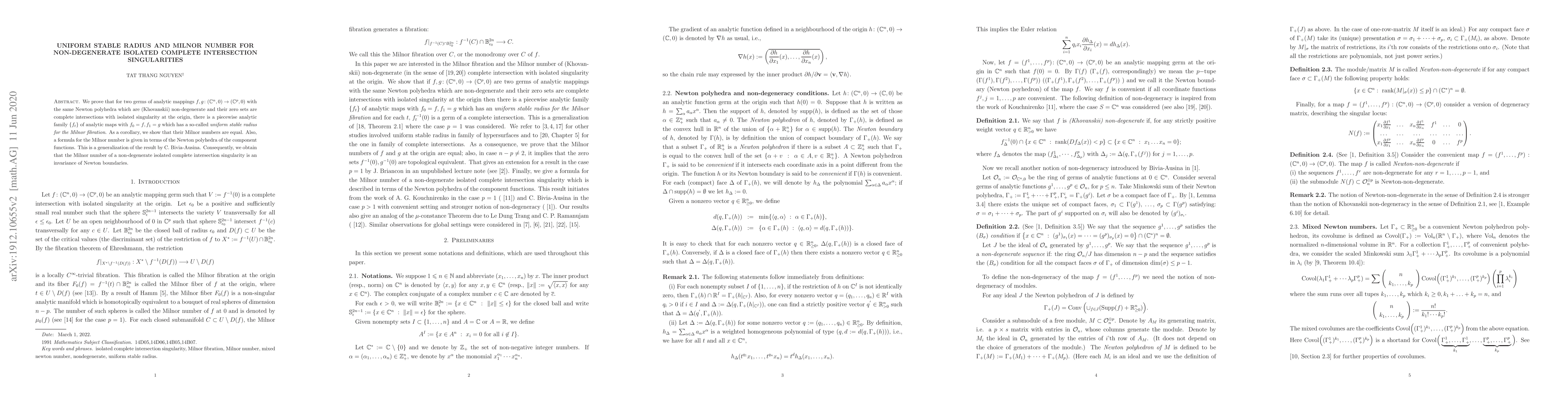 This paper proves the existence of a uniform stable radius for the Milnor fibration of non-degenerate isolated complete intersection singularities with the same Newton polyhedra, showing that their Milnor numbers are equal. It also provides a formula for the Milnor number in terms of the Newton polyhedra of the component functions.