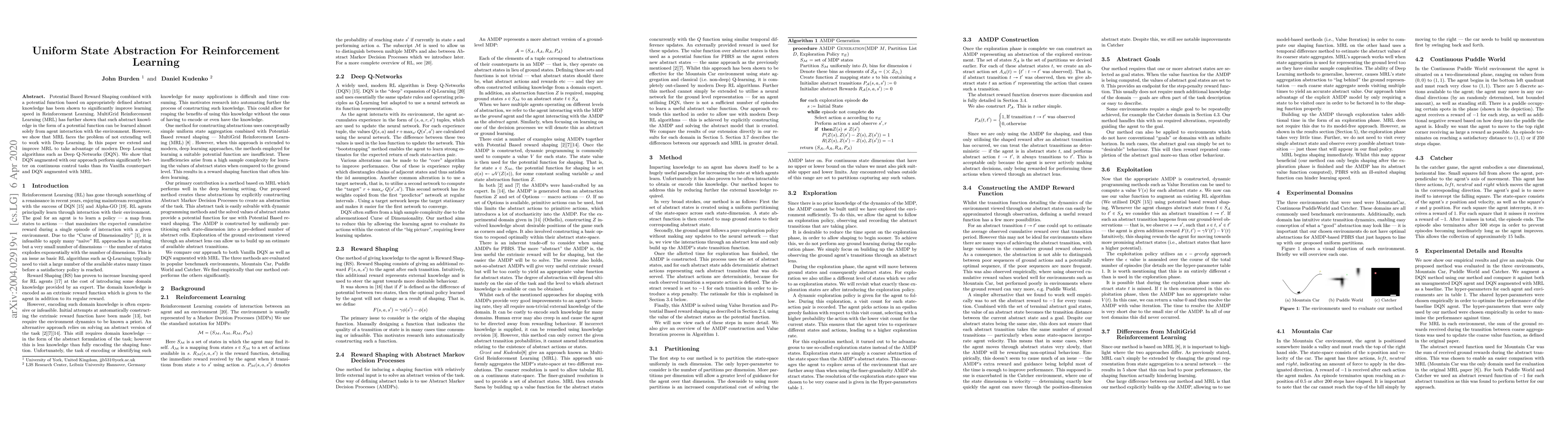 Potential Based Reward Shaping combined with a potential function based on appropriately defined abstract knowledge has been shown to significantly improve learning speed in Reinforcement Learning. MultiGrid Reinforcement Learning (MRL) has further shown that such abstract knowledge in the form of a potential function can be learned almost solely from agent interaction with the environment. However, we show that MRL faces the problem of not extending well to work with Deep Learning. In this paper we extend and improve MRL to take advantage of modern Deep Learning algorithms such as Deep Q-Networks (DQN). We show that DQN augmented with our approach perform significantly better on continuous control tasks than its Vanilla counterpart and DQN augmented with MRL.