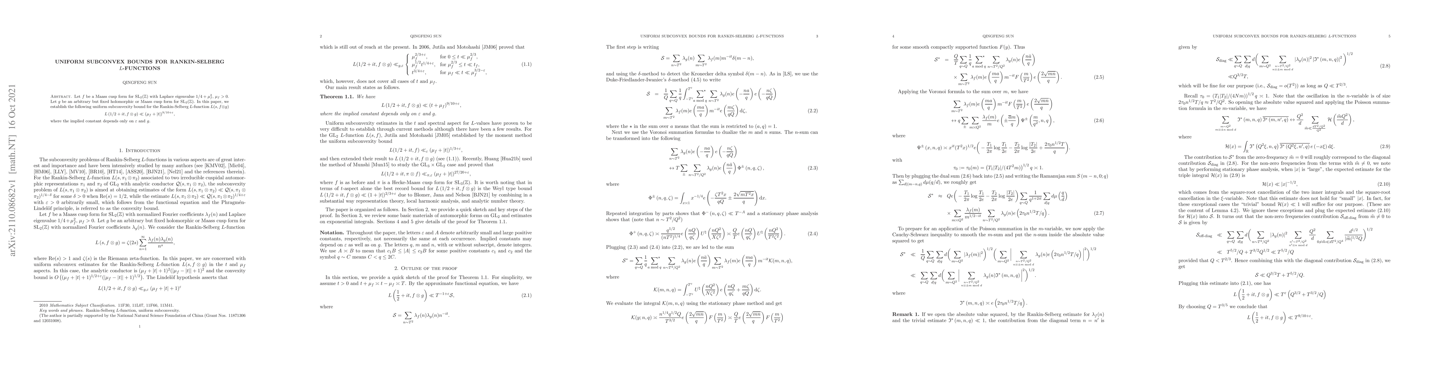 This paper establishes a uniform subconvexity bound for the Rankin-Selberg $L$-function $L(s,f\otimes g)$ associated with a Maass cusp form $f$ and another form $g$, showing that $$ L\left(1/2+it,f\otimes g\right)\ll (\mu_f+|t|)^{9/10+\varepsilon} $$ with a constant depending only on $\varepsilon$ and $g$.