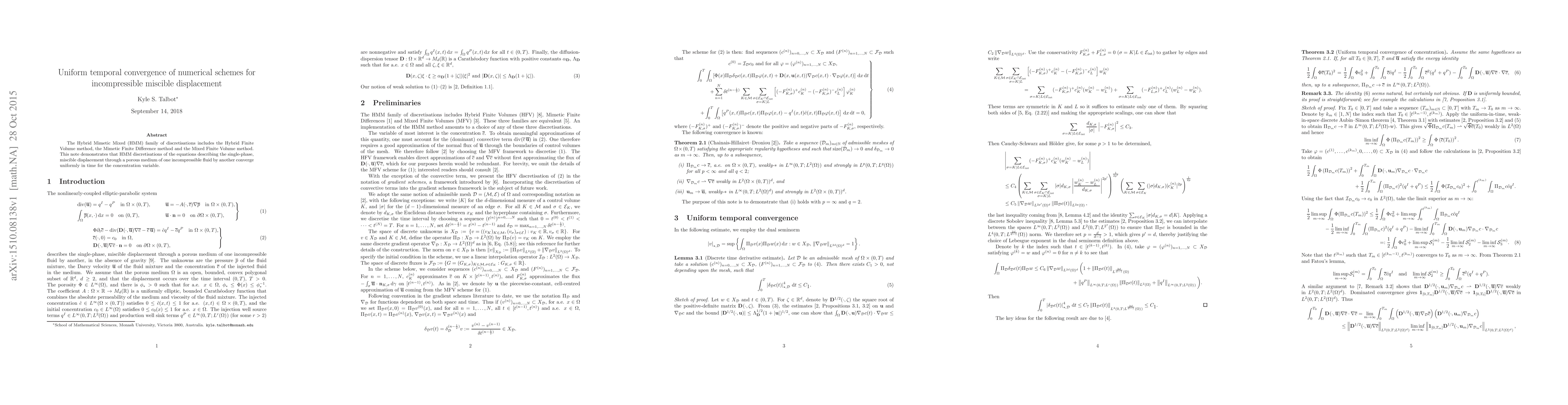 The Hybrid Mimetic Mixed (HMM) family of discretisations includes the Hybrid Finite Volume method, the Mimetic Finite Difference method and the Mixed Finite Volume method. This note demonstrates that HMM discretisations of the equations describing the single-phase, miscible displacement through a porous medium of one incompressible fluid by another converge uniformly in time for the concentration variable.