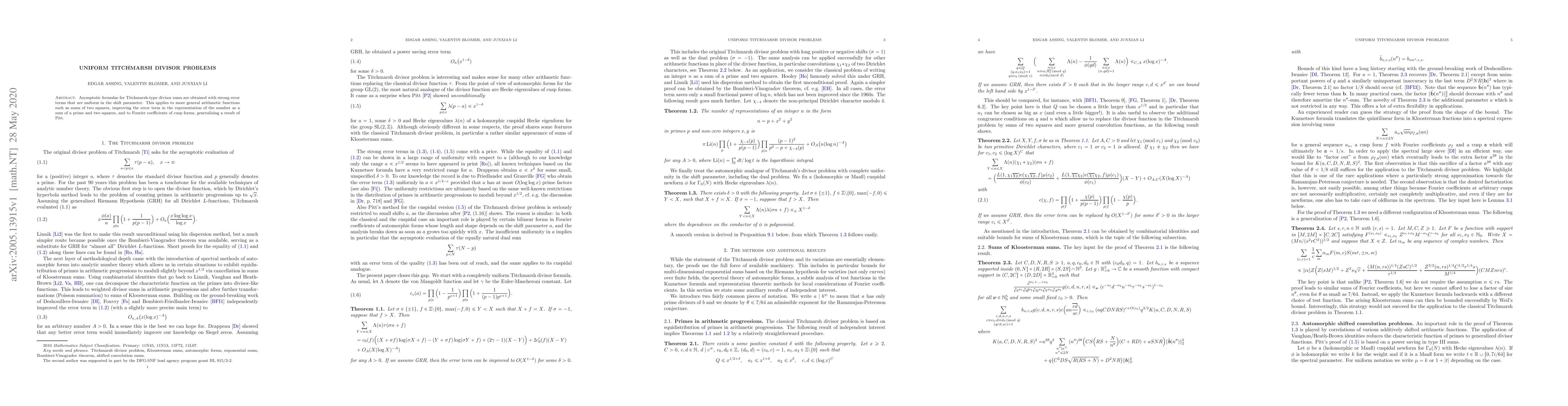 This paper derives uniform asymptotic formulae for Titchmarsh-type divisor sums with strong error bounds, extending the results to arithmetic functions like sums of two squares and Fourier coefficients of cusp forms, thereby improving previous error terms.