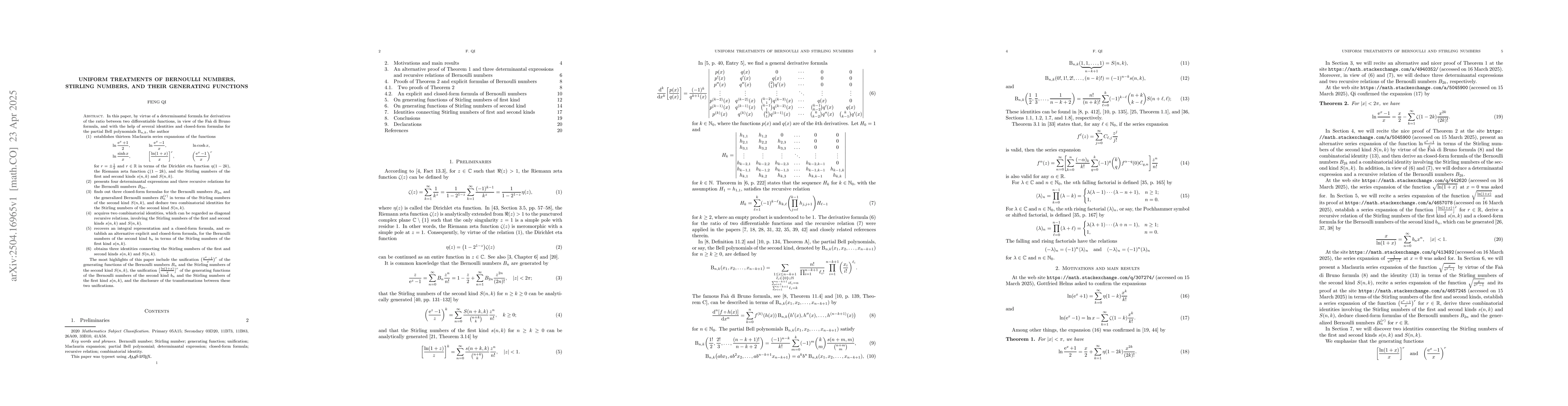 This paper provides a unified treatment of Bernoulli numbers and Stirling numbers, offering new insights into their relationships and potential applications in combinatorics and number theory.