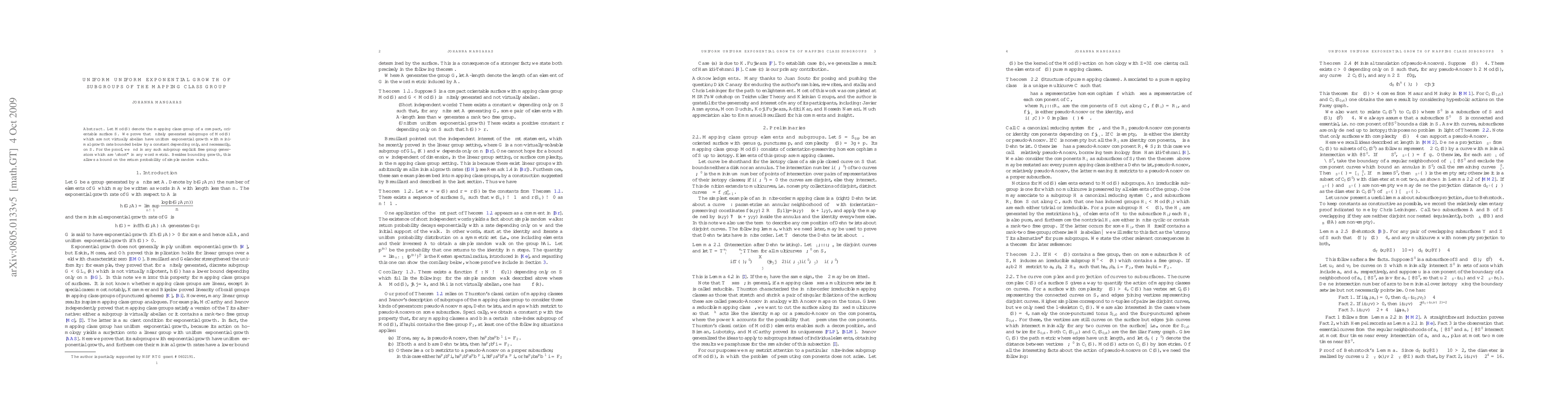 Let Mod(S) denote the mapping class group of a compact, orientable surface S. We prove that finitely generated subgroups of Mod(S) which are not virtually abelian have uniform exponential growth with minimal growth rate bounded below by a constant depending only, and necessarily, on S. For the proof, we find in any such subgroup explicit free group generators which are "short" in any word metric. Besides bounding growth, this allows a bound on the return probability of simple random walks.