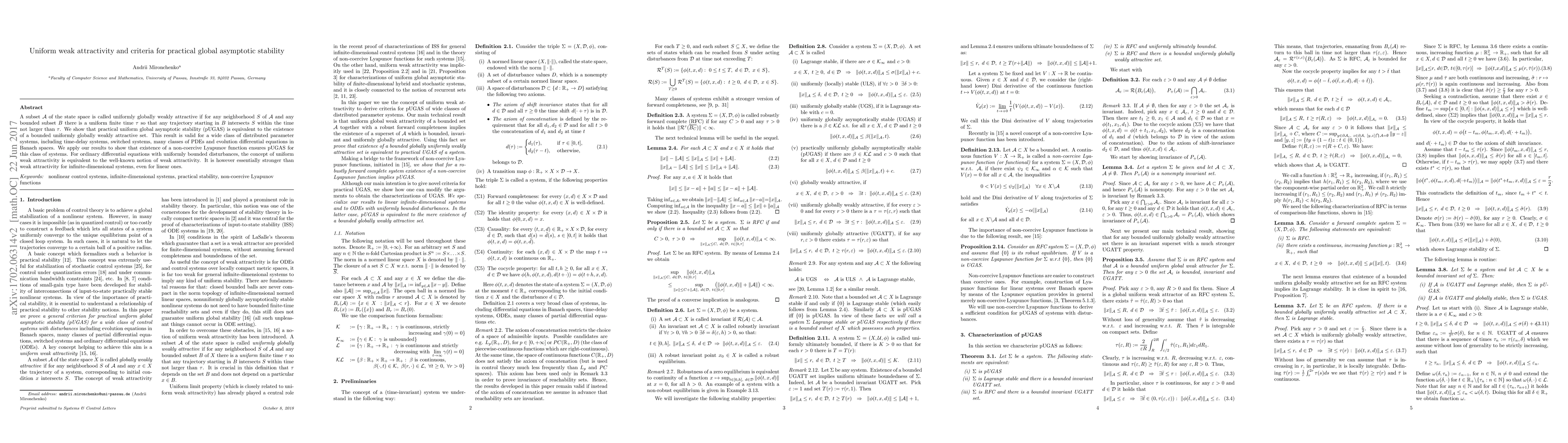 The work introduces a new perspective on pUGAS by linking it to uniform weak attractivity, and extends the applicability of Lyapunov's method to non-coercive functions for infinite-dimensional systems.