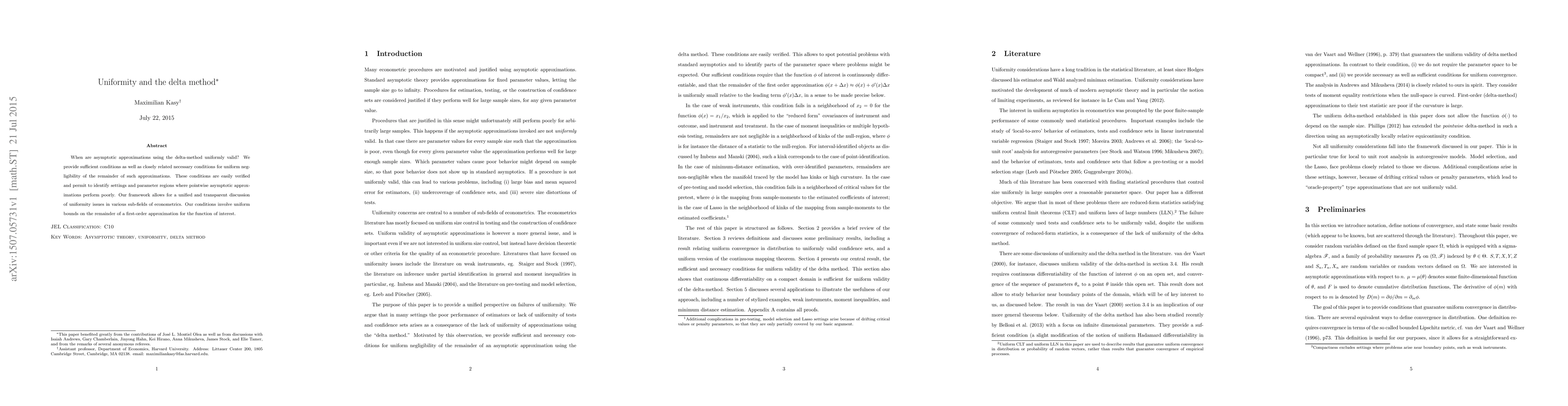 This research paper provides conditions for when asymptotic approximations using the delta-method are uniformly valid, helping identify settings where pointwise approximations perform poorly.