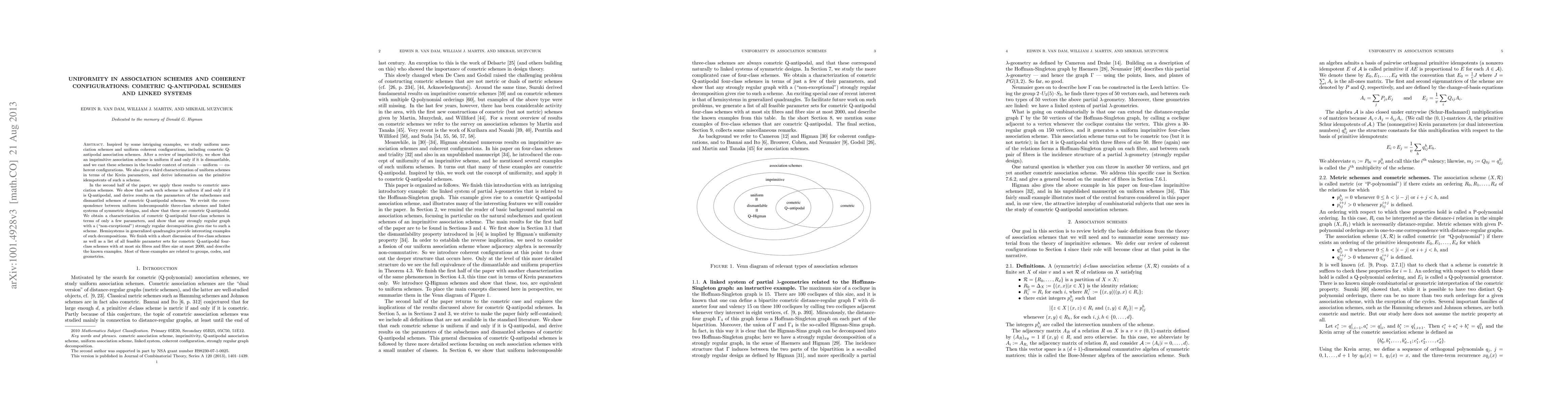 This paper explores uniform association schemes and coherent configurations, focusing on cometric Q-antipodal schemes. It establishes conditions for uniformity in imprimitive schemes and characterizes uniform schemes via Krein parameters, linking them to linked systems of symmetric designs and providing a detailed analysis of cometric Q-antipodal four-class schemes.