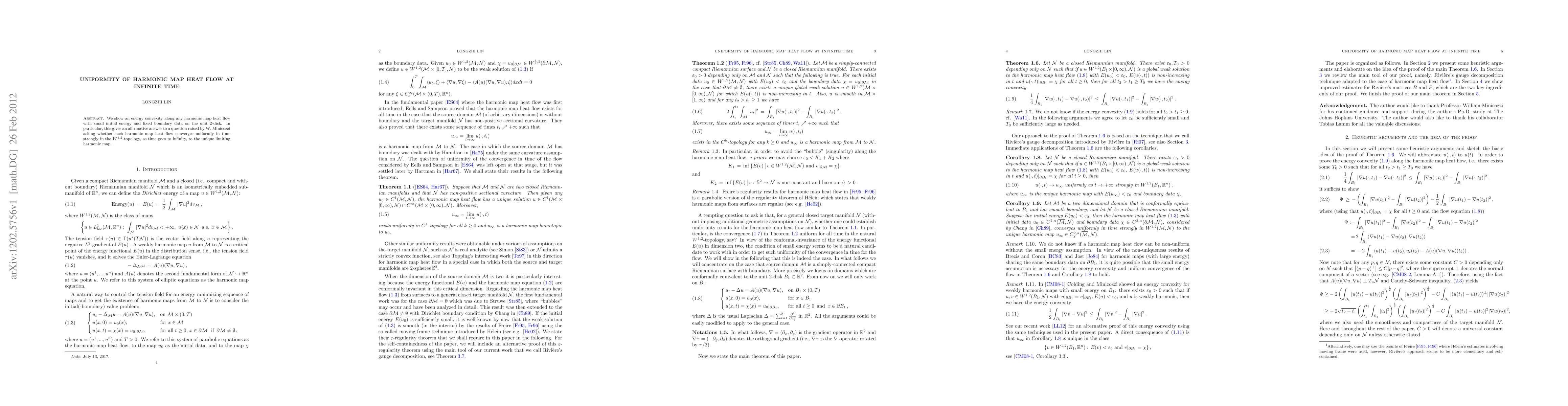The paper introduces a method for proving uniform convergence of harmonic map heat flow using energy convexity and provides a detailed analysis of the flow's behavior at infinite time.