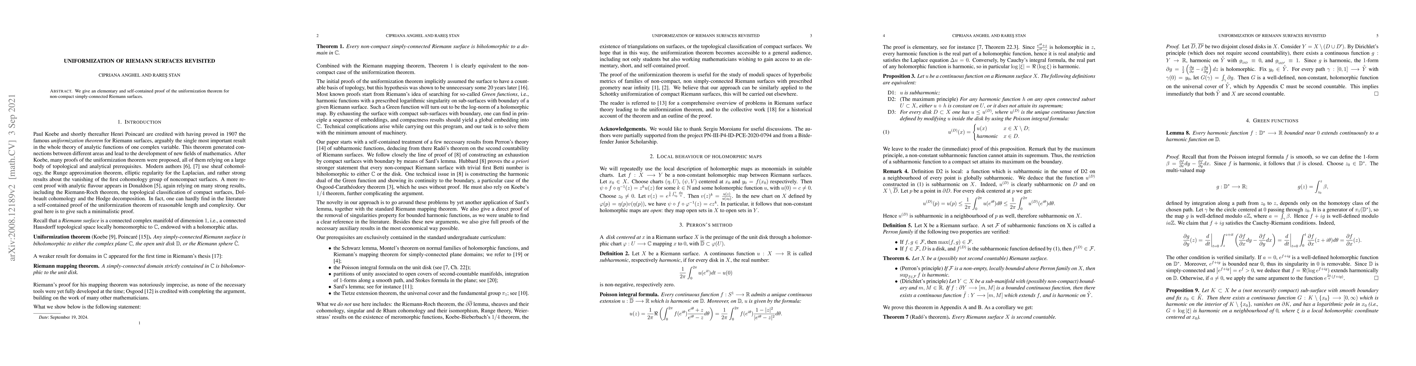 Summary: This paper presents a straightforward, self-contained proof of the uniformization theorem for non-compact, simply-connected Riemann surfaces, emphasizing elementary techniques.
