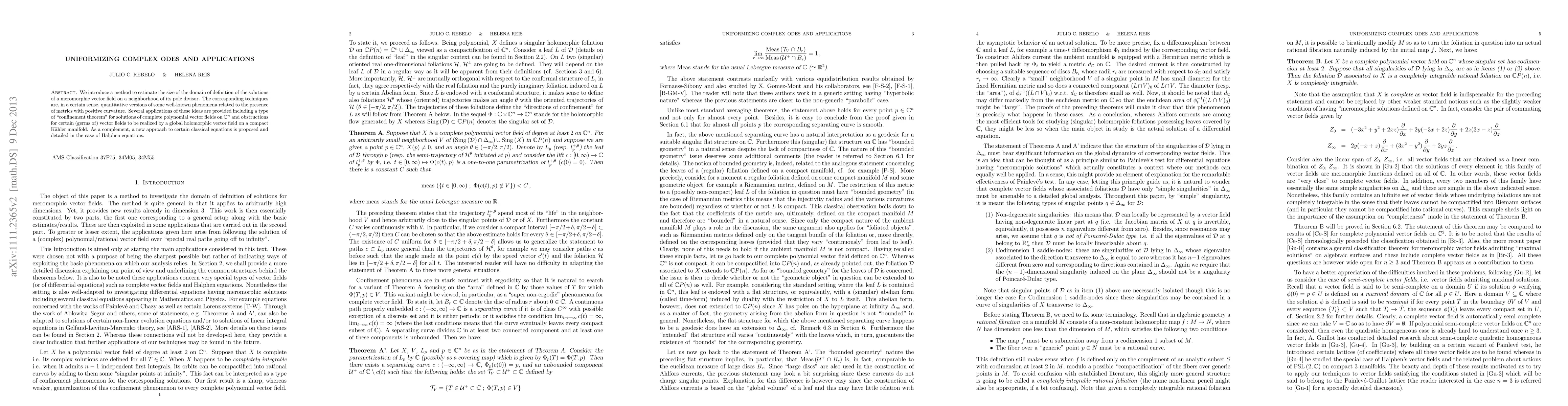 Researchers developed a method to estimate the domain of definition for solutions of complex ODEs, with applications in understanding confinement theorems and obstructions for certain vector fields on compact K"ahler manifolds.
