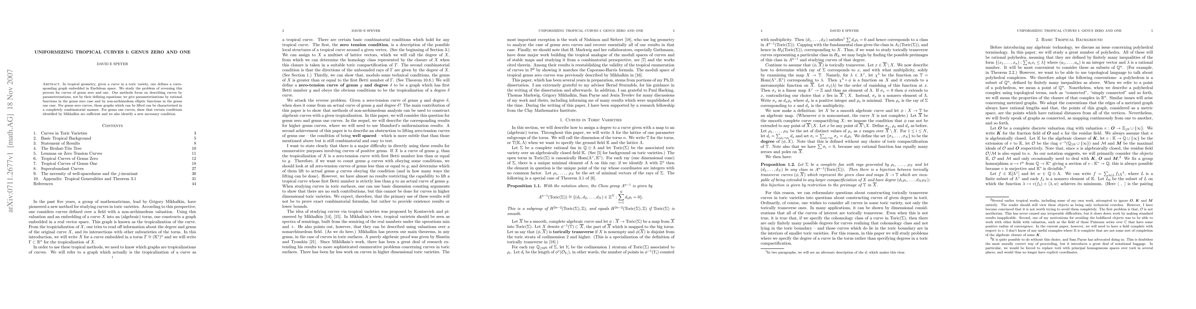 Title: Uniformizing Tropical Curves I: Genus Zero and One Summary: The paper investigates how to reconstruct algebraic curves from their tropical graph representations, focusing on genus zero and one. It provides combinatorial characterizations for genus zero and uses non-archimedean elliptic functions for genus one, establishing new necessary conditions alongside Mikhalkin's sufficient ones.