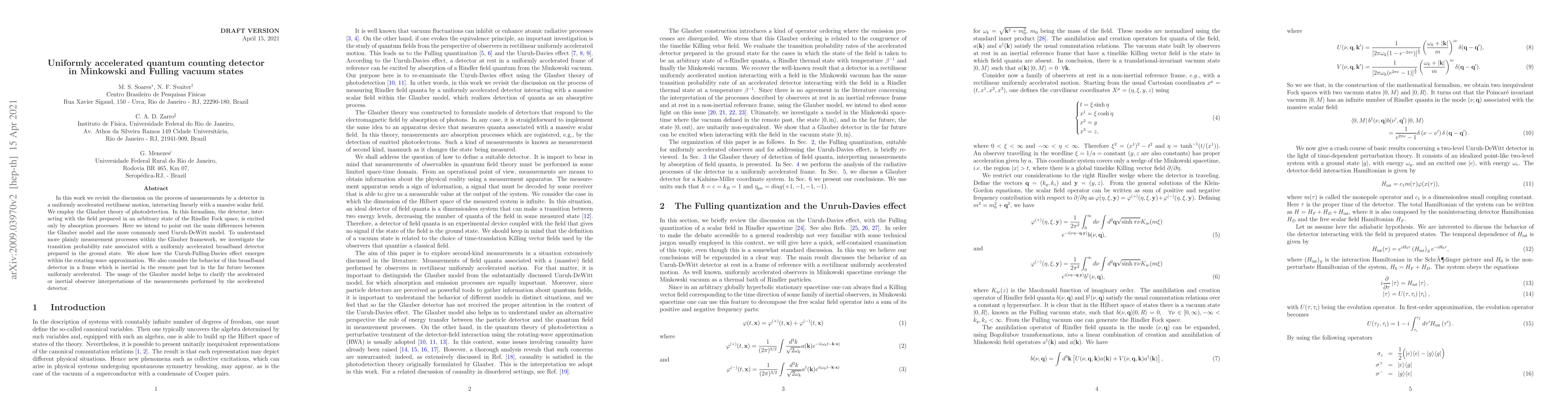 This paper examines the interaction of a uniformly accelerated quantum detector with a massive scalar field in different vacuum states, employing the Glauber theory of photodetection. It evaluates the transition probability rate for various field states, including Rindler quanta, thermal Rindler states, and the Minkowski vacuum, and discusses the implications of accelerated versus inertial observer interpretations.