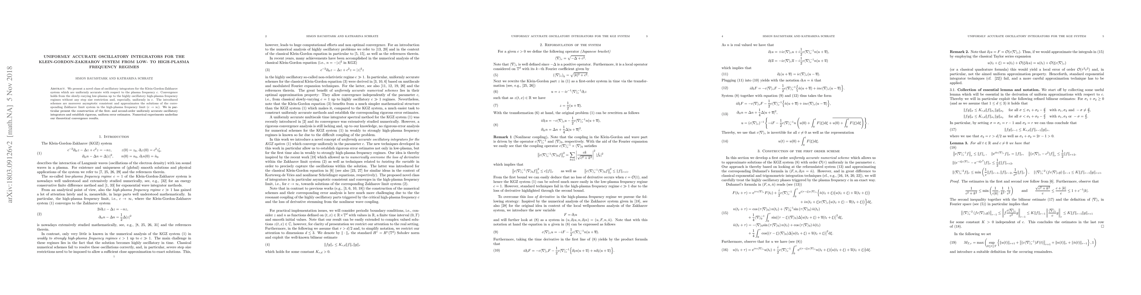 We present a novel class of oscillatory integrators for the Klein-Gordon-Zakharov system which are uniformly accurate with respect to the plasma frequency $c$. Convergence holds from the slowly-varying low-plasma up to the highly oscillatory high-plasma frequency regimes without any step size restriction and, especially, uniformly in $c$. The introduced schemes are moreover asymptotic consistent and approximates the solutions of the corresponding Zakharov limit system in the high-plasma frequency limit ($c \to \infty$). We in particular present the construction of the first- and second-order uniformly accurate oscillatory integrators and establish rigorous, uniform error estimates. Numerical experiments underline our theoretical convergence results.