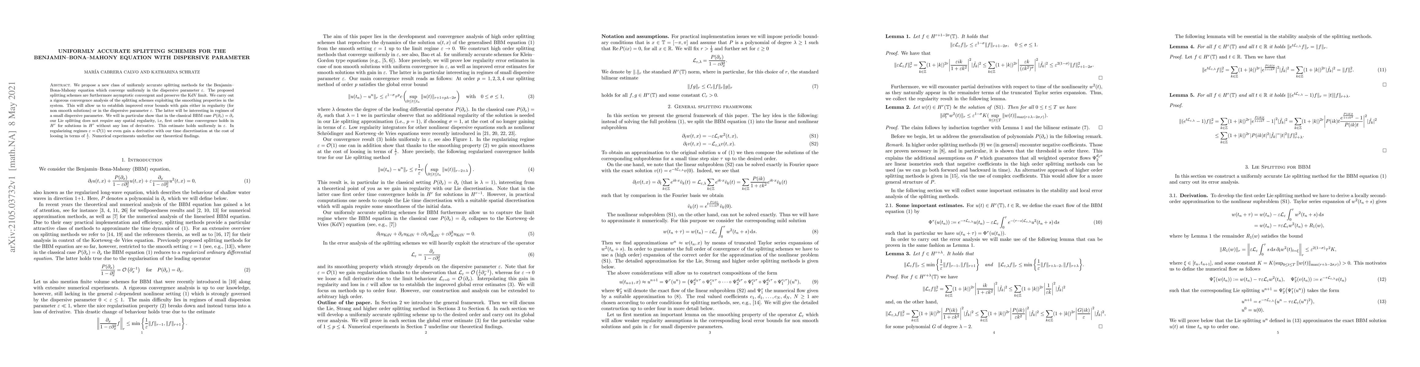 Researchers developed new splitting methods for the Benjamin-Bona-Mahony equation that converge uniformly with a dispersive parameter, offering improved error bounds and demonstrating first-order time convergence in certain regimes.