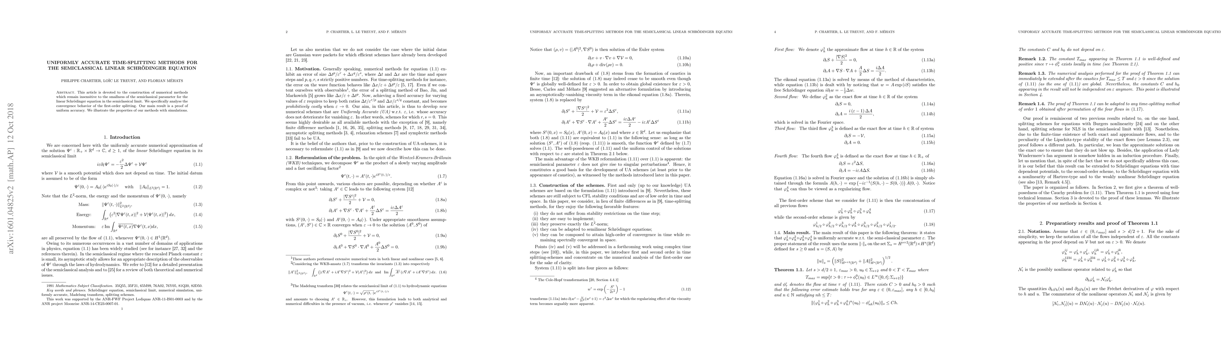 This paper develops uniformly accurate numerical methods for the semiclassical linear Schrödinger equation, demonstrating the convergence behavior of first-order splitting and proving uniform accuracy. Simulations are used to illustrate the effectiveness of the proposed methods.