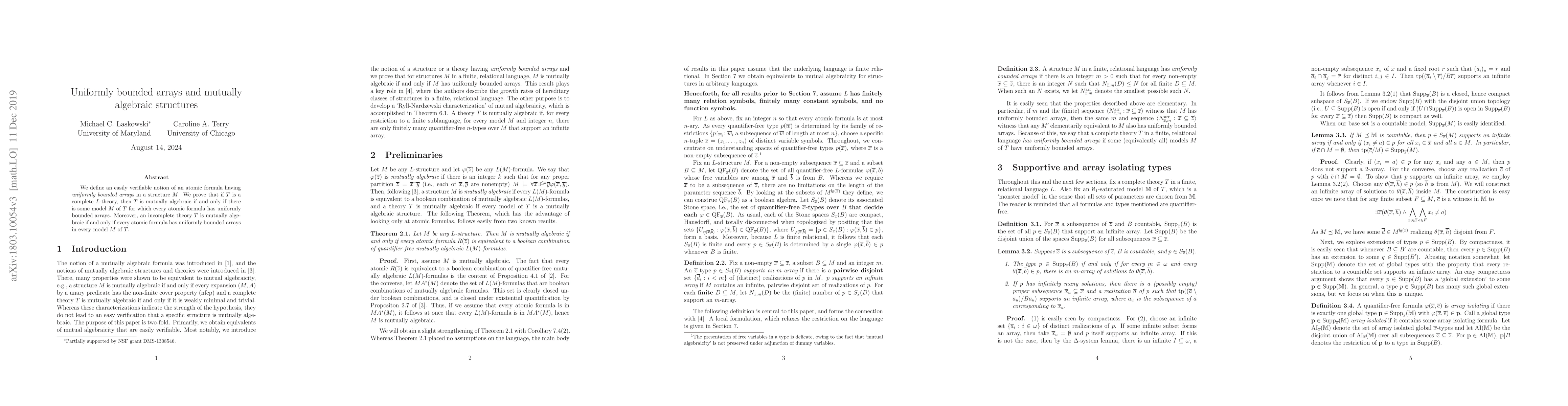 This paper introduces a concept of uniformly bounded arrays in structures and proves that a complete theory $T$ is mutually algebraic if every atomic formula in some model $M$ of $T$ has uniformly bounded arrays. It also shows that an incomplete theory $T$ is mutually algebraic if every atomic formula in every model $M$ of $T$ has uniformly bounded arrays.